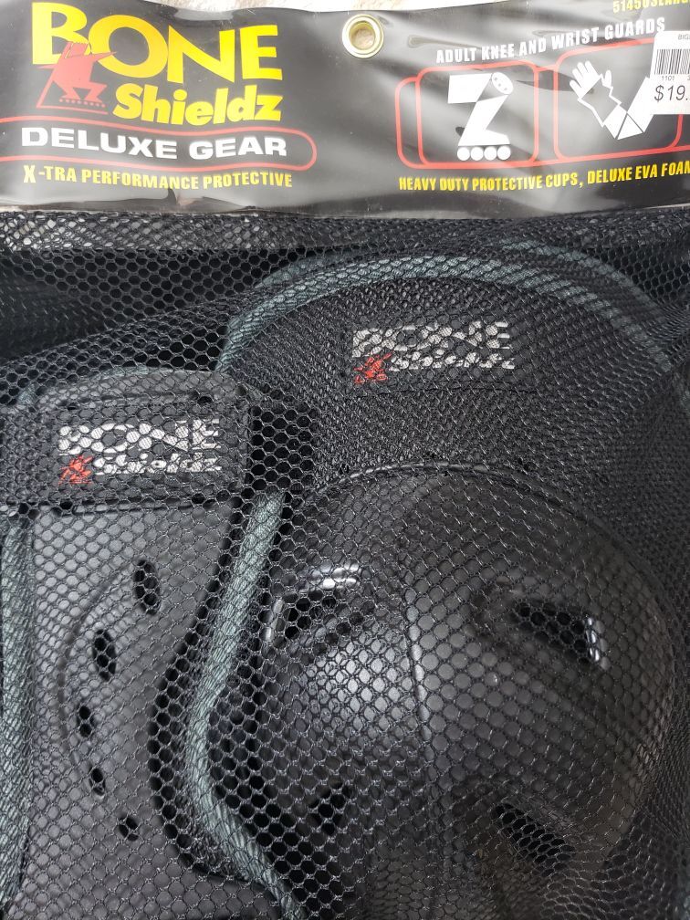 Bone Shieldz Deluxe Gear. Size Large. Adult Knee and Wrist Guards. Heavy duty protection cups, deluxe EVA foam. New. Never used.
