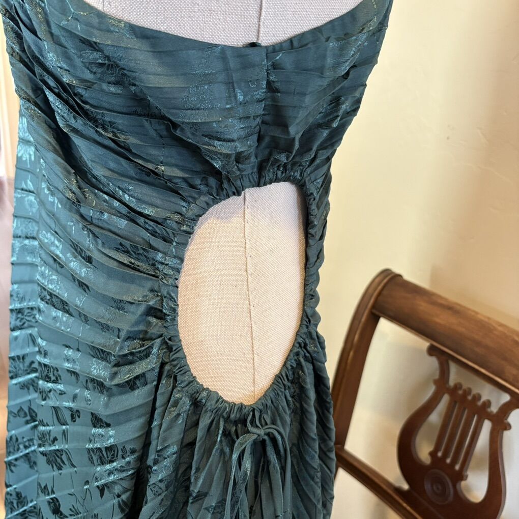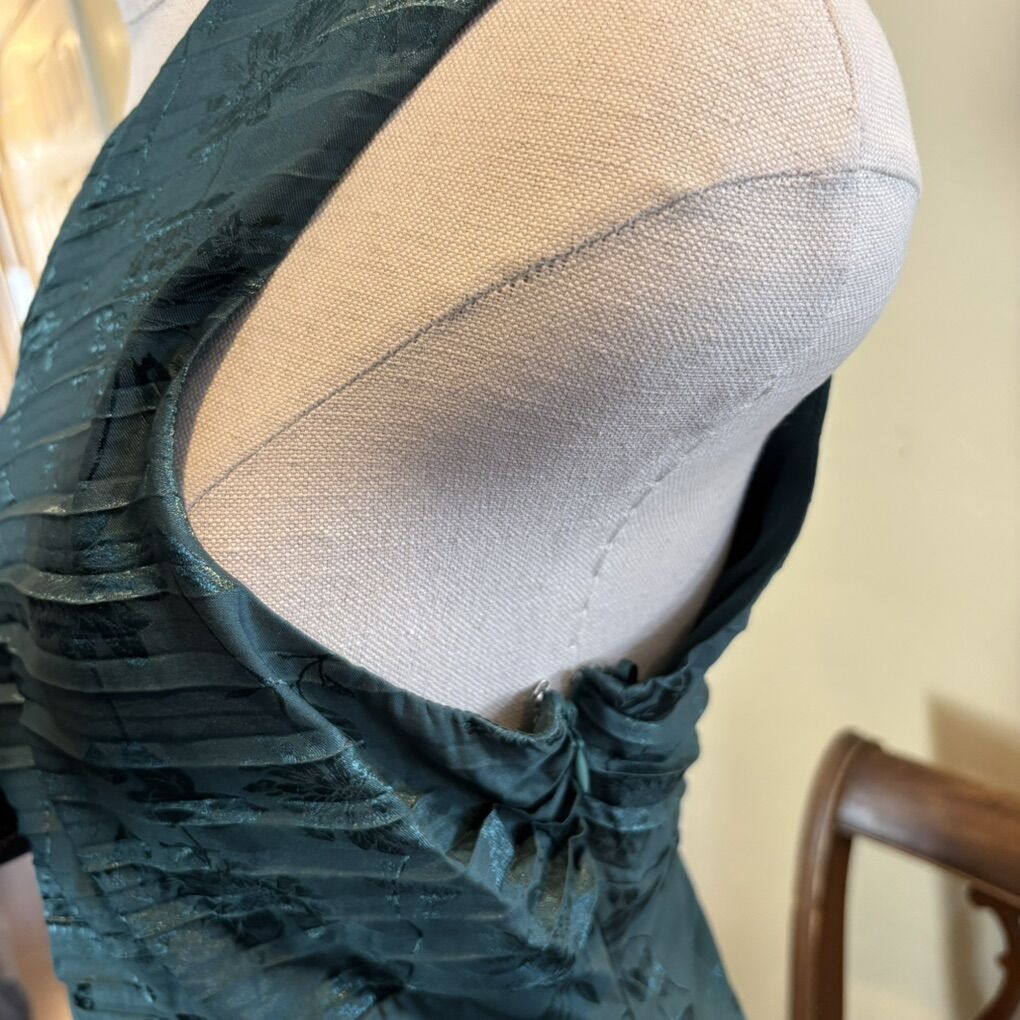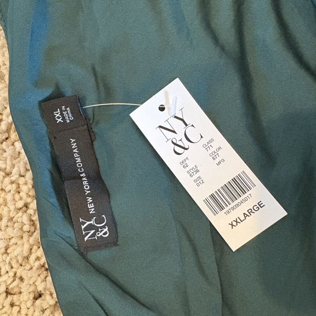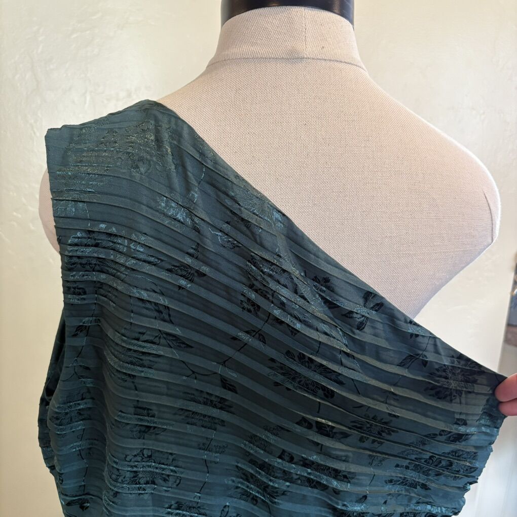 New with tags D4905A XXL NY&Co Polyester/spandex blend Asymmetrical Jacquard, Emerald Green One shoulder Cocktail, holiday, Christmas dress Round cut out with tight closure at waist Pleated fabric $50