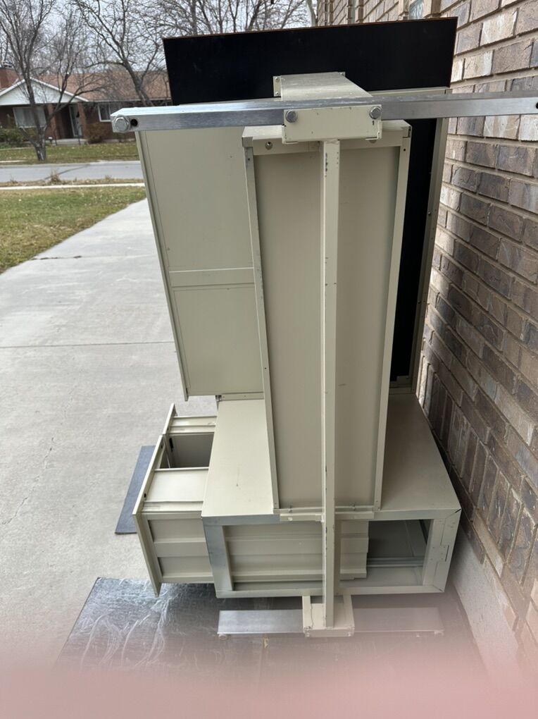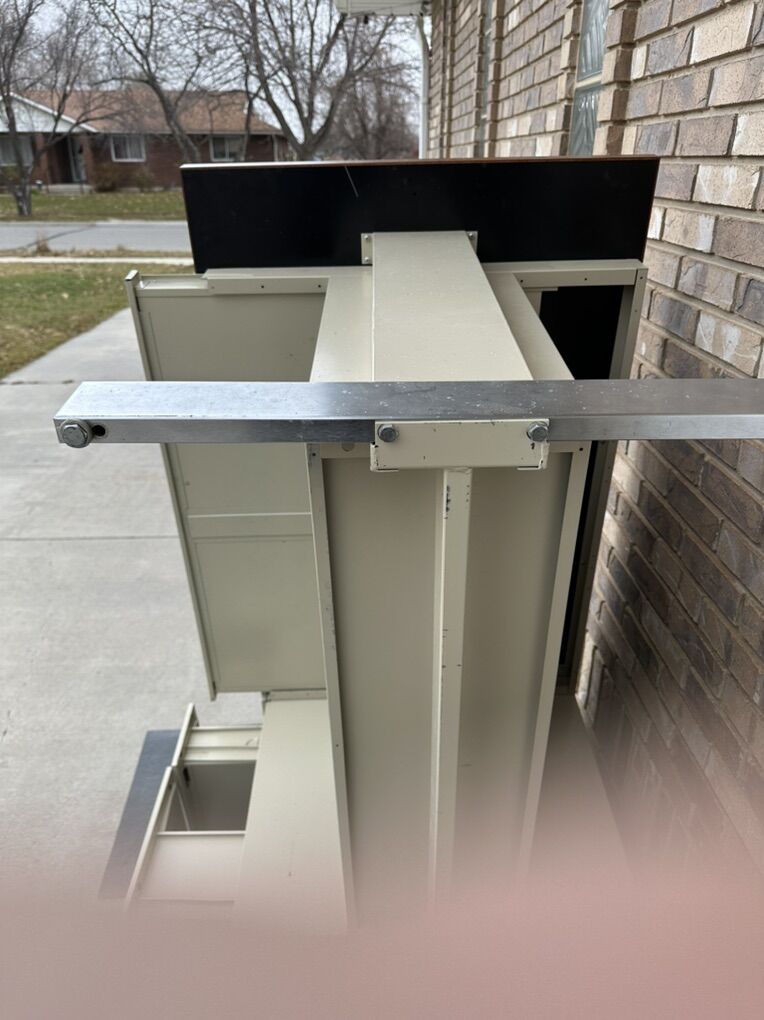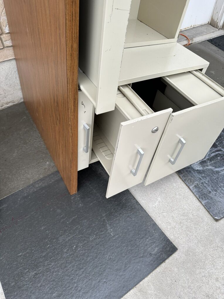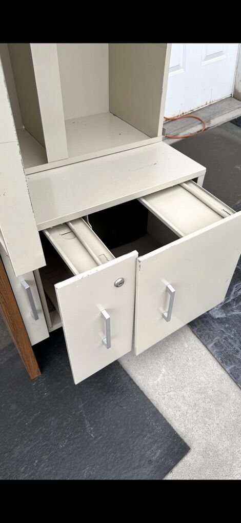 File drawer Small drawer Large drawer below top 2” deep 40”x28” Built like a tank .. real heavy bring two people to haul . Like New Beautiful Desk
