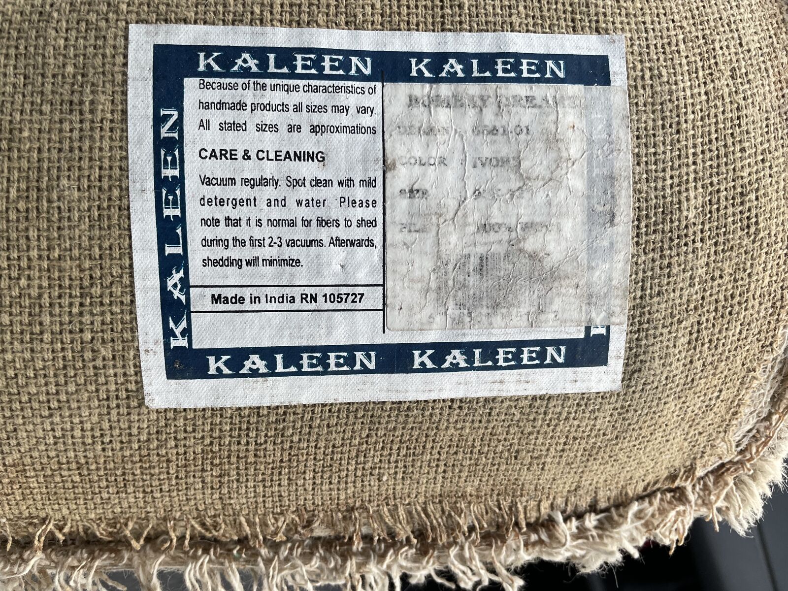 Been cleaned and has only one stain that I keep under the couch. Made in India. Retail was over $1000. Comes with a pad for underneath.