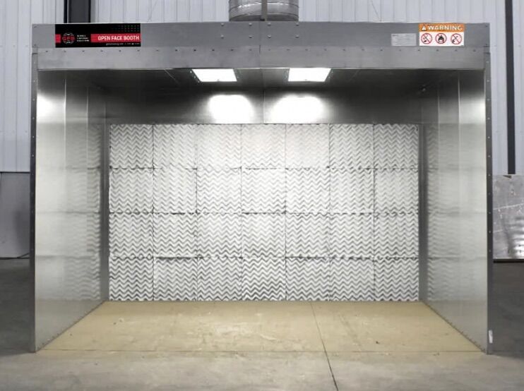 Disassembled open face paint booth by Global Finishing Systems 12ft wide 9ft deep 8ft high Exhaust system for a roof up to 20 feet Runs on 110 power New would be approximately 18k plus. Purchased in 2019, in perfect working order. We bought it, disassembled it to get it home and haven't used it. We have all parts and manuals for you. Company still carries parts and support for this system. https://globalfinishing.com/products/application/ liquid-paint-booths/industrial-paint-booths/dry-filter-booths/open-face-paint-booths/
