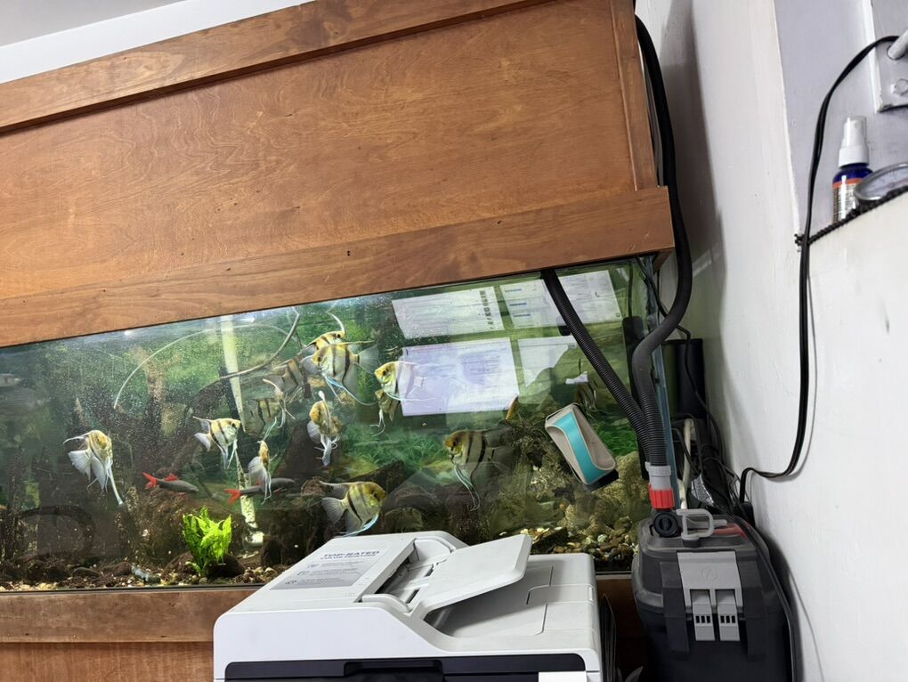 Venmo135 Gallon Aquarium Fish Tank ( Full Set Up With Fishes) Mostly angelfish and others Tank measurement 12x24x72