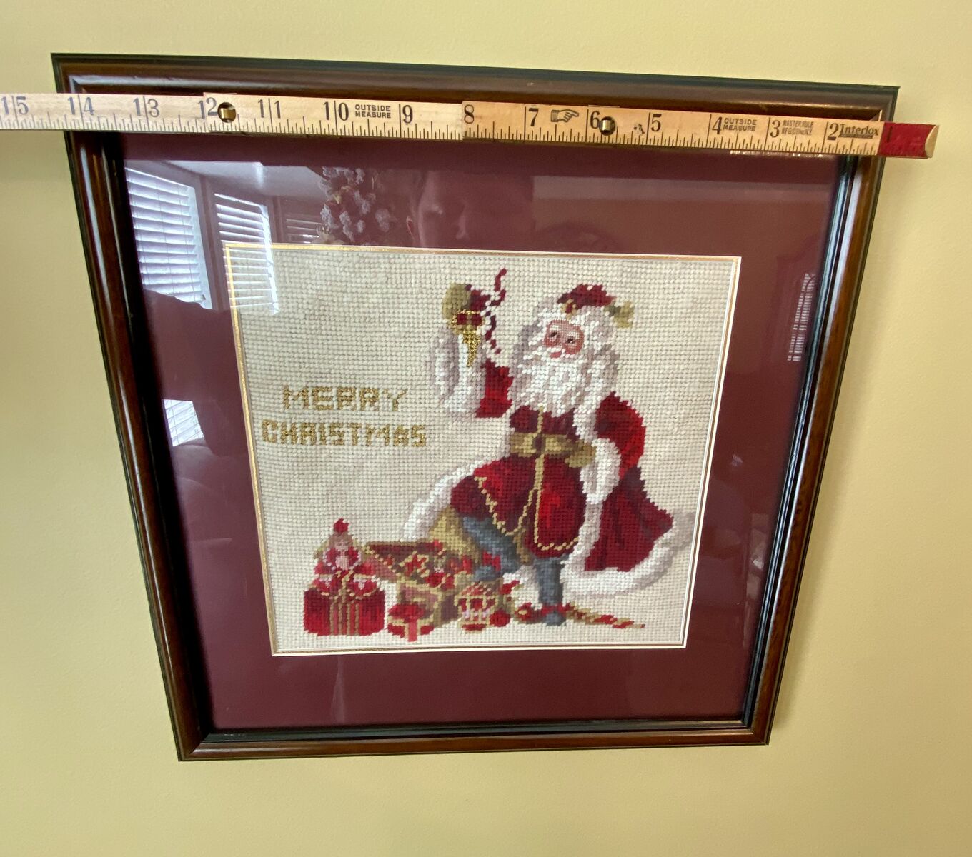 NEW - Gorgeous NEEDLEPOINT LARGE Framed And Matted Vintage Santa - New In The Box - C PIX. More details in photos.