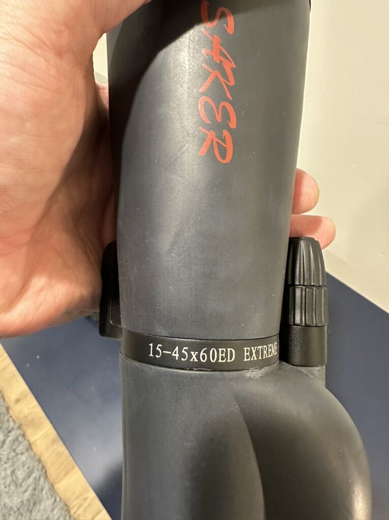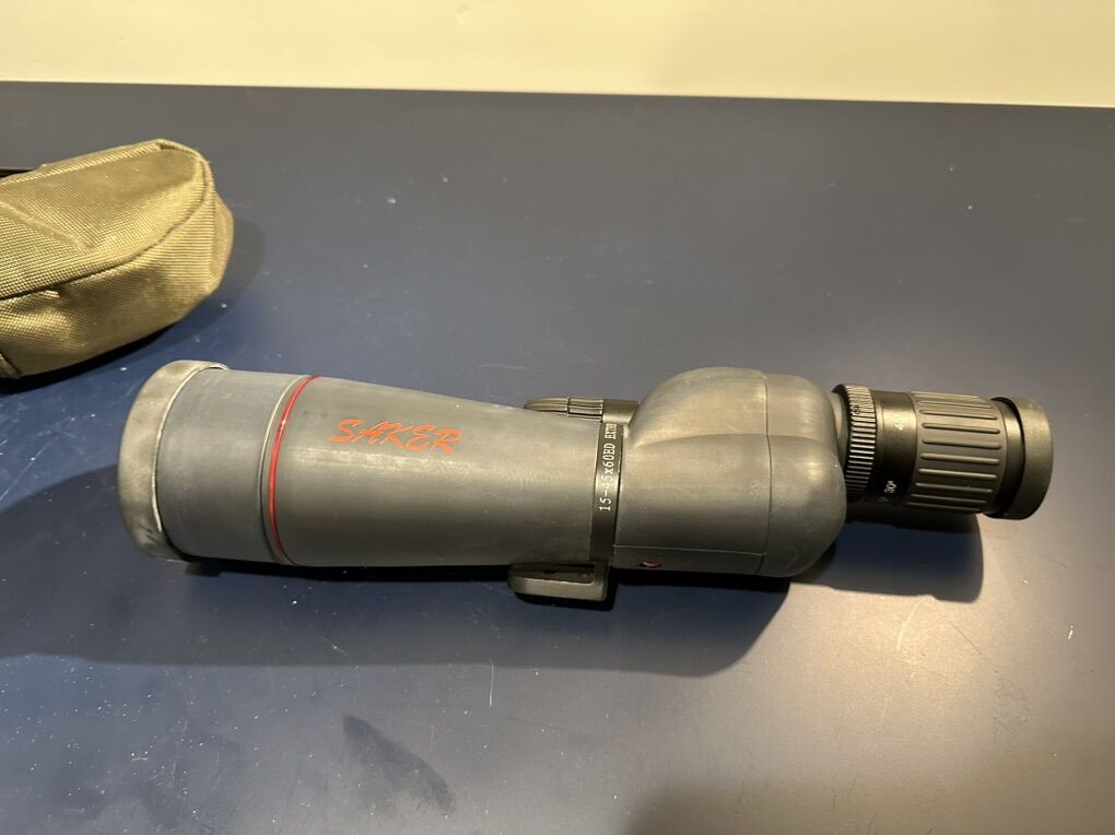 Theron Saker 15-45x60mm ED Spotting Scope – Like New Up for sale is a Theron Saker spotting scope in pristine, like-new condition. Featuring high-quality ED glass for crisp, clear viewing, this 15-45x magnification scope is perfect for lightweight backpacking, hunting, or range use. Includes the original soft protective carry case.