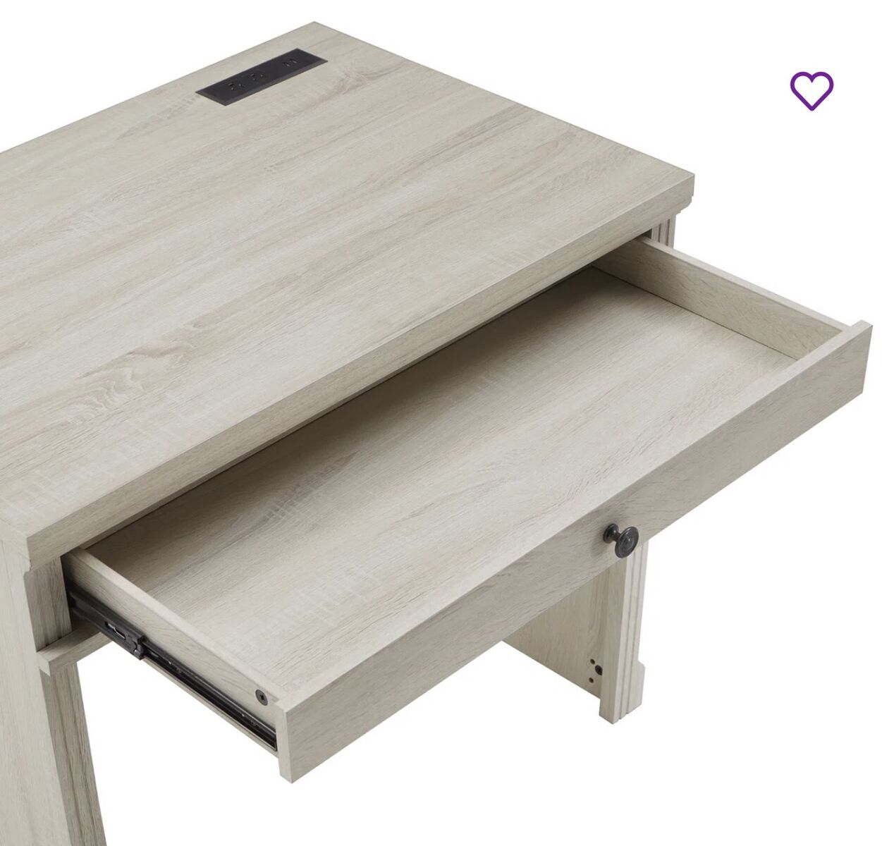 Desk features a simple silhouette and a distressed finish that bring a cozy cottage vibe to your home office or living area. A 35" wide desktop is the ideal size for papers, a laptop, and other office essentials. Plus, it comes with a single drawer that has vintage-inspired black metal hardware. Made from engineered wood, this desk exudes modern farmhouse charm wherever you put it. The best part? Two USB ports and two outlets on the top make it a cinch to keep all your electronics powered up.