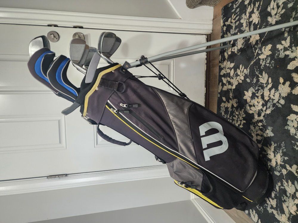 Includes a nice Wilson stand bag in great shape. Lots of storage pockets and zippers all work