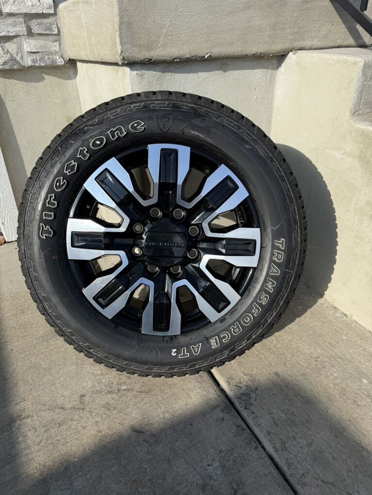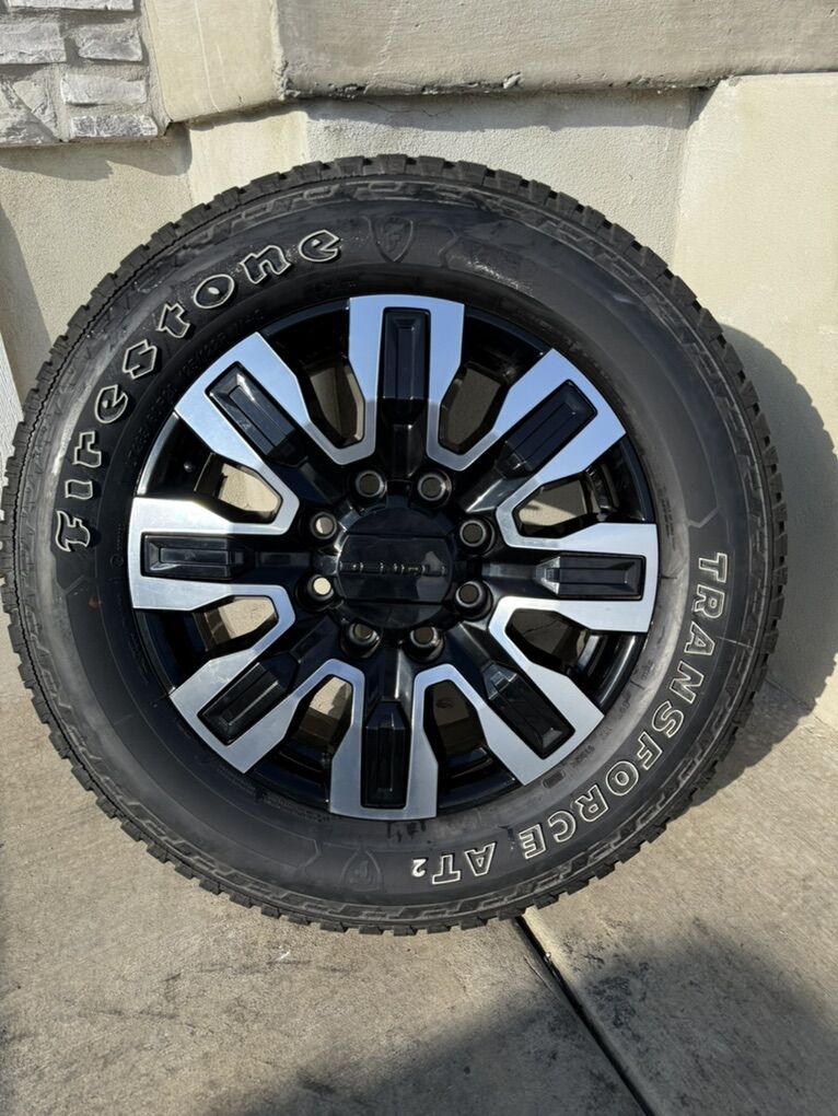 ApplePaySet of 4-Gmc Sierra 3500 Denali Rims and Tires 285/60R20 Firestone Transforce AT2 Brand New only 500 miles on them,in excellent condition,asking $1750 obo I can sell the rims or tires separately Bolt pattern 8-180 They will fit Chevy GMC 2500-3500 from 2011-2025 Text anytime 385-402-2292