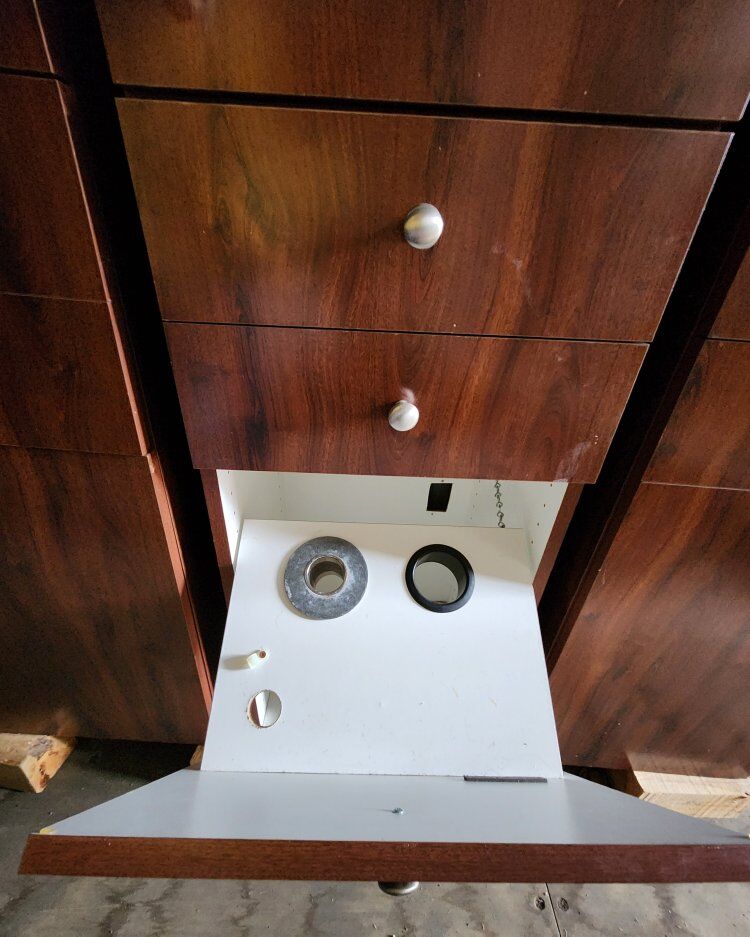 Venmo2 tall cabinets per set with center work space and area for a mirror, not offered. molding for tops. Hair salon set up. all drawers and doors have locks and keys. 7 sets availible@$125.00 per set