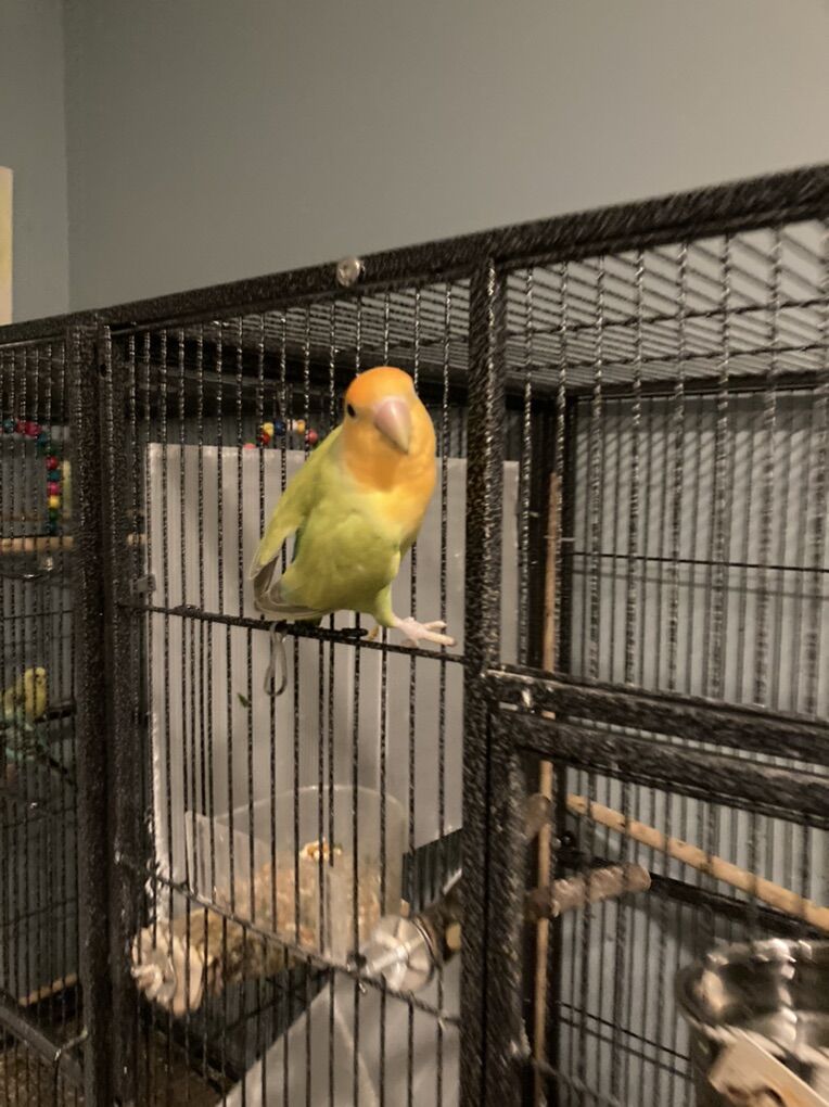 Both peach face. The female(Elinor)is the whiter one. The male (Fergus) is the orange one. They are very cute and shy, a proven pair but need a bigger nest box. I will be particular about where they go they like being around other birds (especially love birds) but obviously being a bonded pair should have there own cage. I am only selling because I could use the space and cash so firm on price. $300 come with a med size cage that they shouldn’t be kept in long term and you will need to buy them a decent size nest box or two.