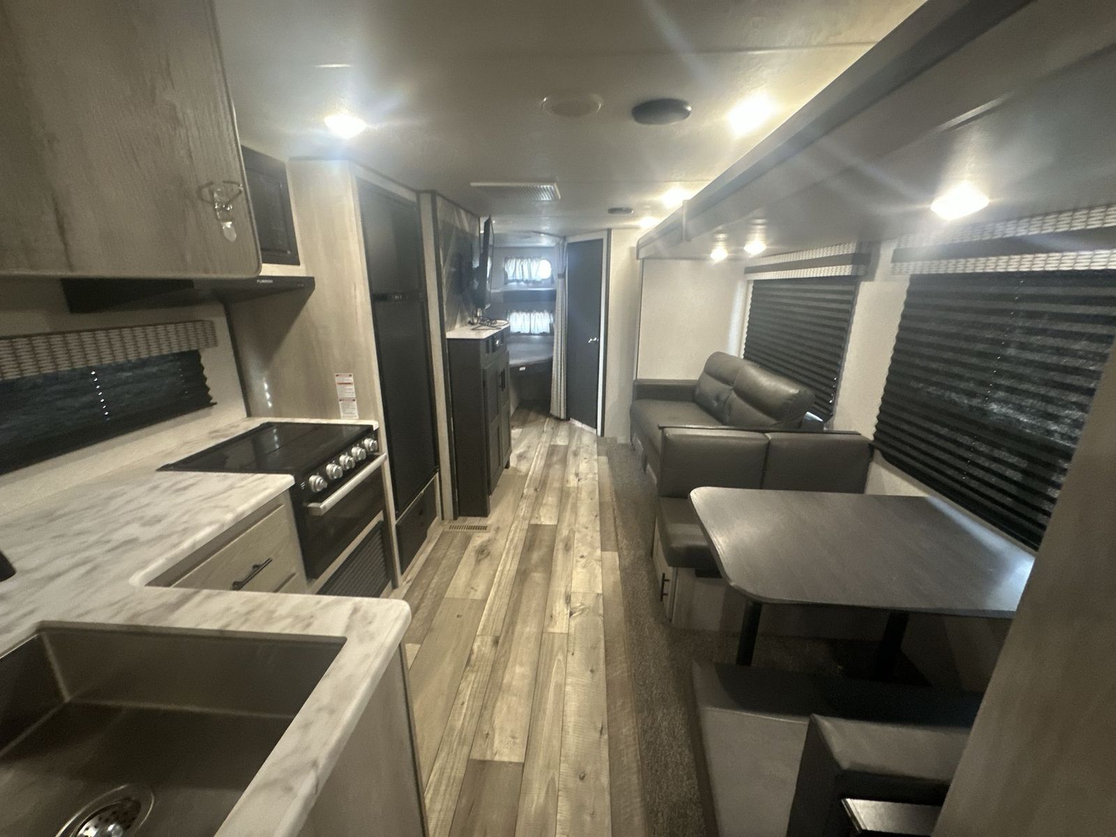 KZ Connect SE travel trailer C271BHKSEhighlights: Double-Size Bunks Walk-In Pantry 70" Sofa Booth Dinette Outside Kitchen Headed to the RV park with your family and friends? Want enough space to allow overnight guests to stay the night on occasion? This trailer gives you double-size bunks, a 70" sofa and a booth dinette that offer extra sleeping space while you enjoy your own walk-around queen bed in the front private bedroom. You will also have dual wardrobes, and a TV mount to add your own TV. Everyone will stay refreshed and cleaned using the rear corner full bathroom, and fed by the cook that has an inside kitchen with full amenities including an L-shaped counter and a large sink. There is also a walk-in pantry with coat hooks next to the entry to utilize as a multi-purpose closet. And there is an outside kitchen with a griddle and arefrigerator, a 20' power awning with an LED light strip, and a pass-through storage for the larger camping items. Each Connect SE travel trailer by KZ includes an NXG frame foundation that is constructed with high-strength low-alloy prime steel, uses the CNC controlled rail fabrications and camber, plus eliminates frame failures, construction issues, and corrosion! The Climate package provides added insulation to extend your camping season year-round with a fully enclosed, insulated and heated underbelly to protect the tanks and pipes. Some top features include the 17-inch range with illuminated control knobs, the seamless countertops with a deep undermount stainless steel kitchen sink including a sink cover for added countertop space, and a black high-rise faucet. You will also enjoy the KZ Engage package that is powered by OneControl to monitor and control the battery levels, the slide(s), the leveling system, the awning(s), plus the inside and outside lighting. Choose your favorite today!