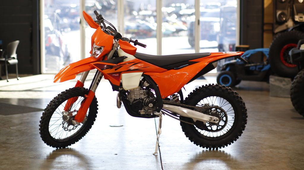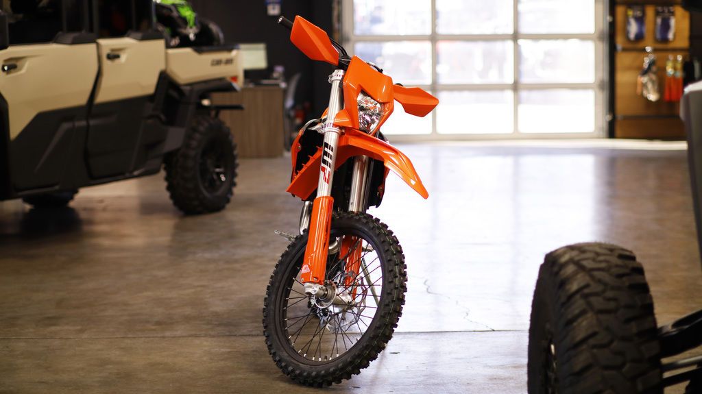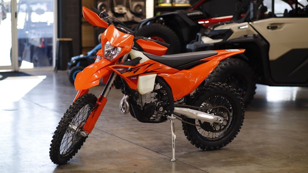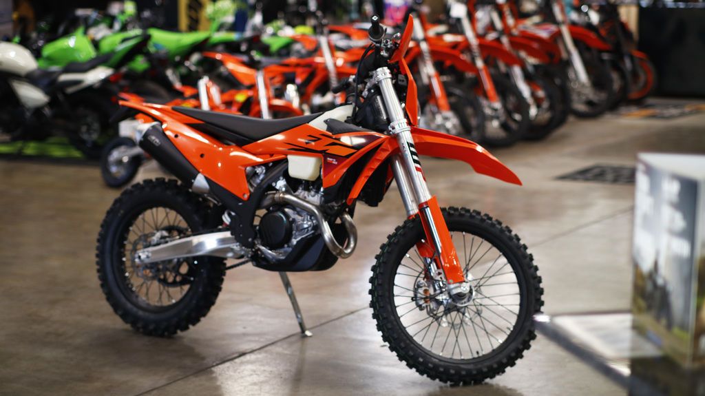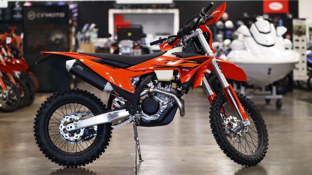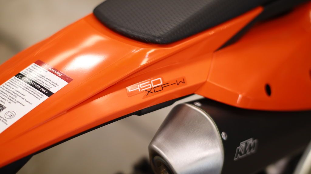 2026 KTM 450 XCF-W CHALLENGE THE EXTREME The KTM 450 XCF-W rolls into the open class with a renewed appetite for finding the limit. Boasting a class-leading chassis, unflappable suspension, race-proven bodywork, and rider-focussed ergonomics - not to mention one of the winningest 450 cc engines in the class - the KTM 450 XCF-W is ready to launch off the line with the podium firmly in its sights. Features may include: Preparation makes Perfect Adjustability Getting READY TO RACE has never been easier. The KTM 450 XCF-W boasts a tool-free suspension setup at both ends. At the rear, our legendary, race-winning PDS technology features hand-adjustable dual compression controls, allowing riders to adjust high- and low-speed settings in a matter of seconds. On the front, the forks are also easily adjusted thanks to hand-adjustable clickers on the bottom of the fork shoe and on the fork top cap, making changing settings on the fly as easy as twisting the throttle. Benchmark lap Engine The ?powerplant in the ?KTM 450 XCF-W? is ?a? perfect example of advanced engineering techniques? developed on the race track and transferred to the ?dealership floor. With an overall weight of just 63.9 lb (29 kg)?, this powerplant ?is as powerful and it is prone to winning championships. On the charge Frame Specifically engineered for longitudinal rigidity, the KTM Enduro range is engineered around a black powder coated frame providing exceptional rider feedback, energy absorption, and high-speed stability. This is achieved by repositioning the rotating masses in the frame along with a forged steering head connection. The footrest mounts also feature a slim design for less risk of hooking up. And when the ride comes to an end, a forged one-piece side stand ensures your enduro weapon stands proud. Keeping you going Stability The KTM 450 XCF-W remains rock-solid at any speed thanks to a repositioned and forged steering head connection and CNC-milled triple clamps. Made from high-grade aluminum, these feature optimally tuned steering stem stiffness, perfect alignment of the fork tubes, and precise geometry of the fork clamps to ensure highly responsive and smooth fork action - not to mention unwavering stability for those ultra-fast flat-out special stages.