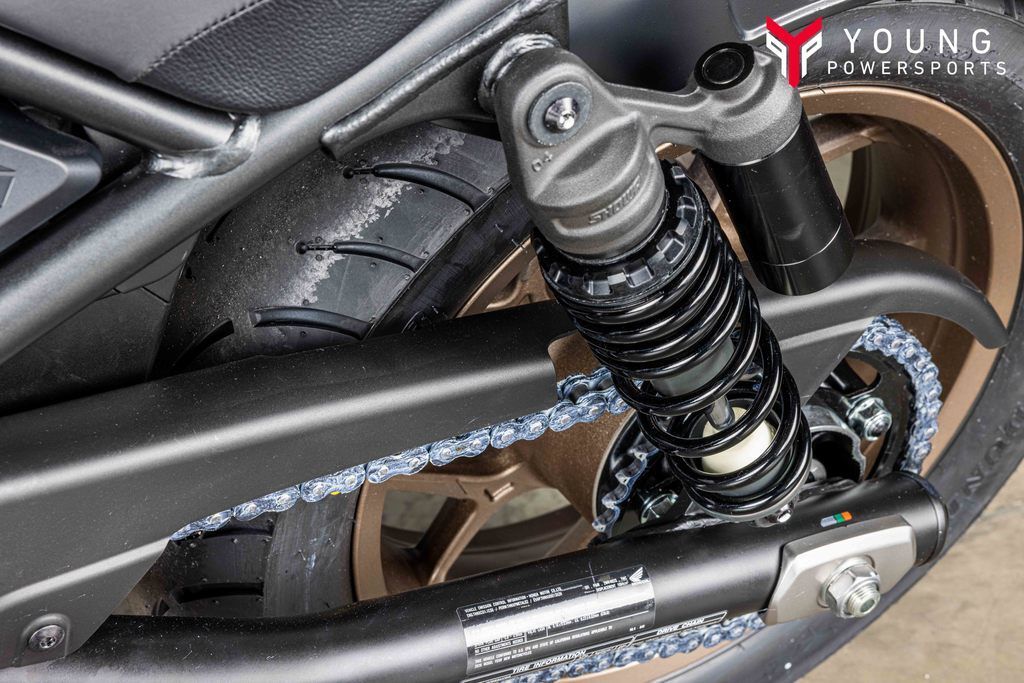 Offering ample torque at any rpm, this bike redefines the modern cruiser with its powerful Unicam®?parallel-twin engine. Proven in our Africa Twin and tailored for the Rebel, it combines easy cruising with unmatched revving capability, setting the standard for its class.