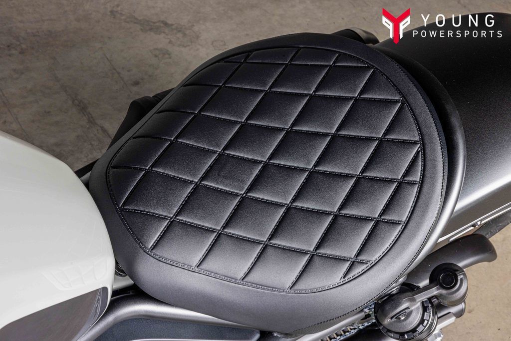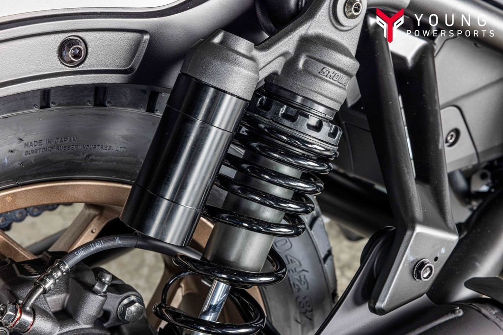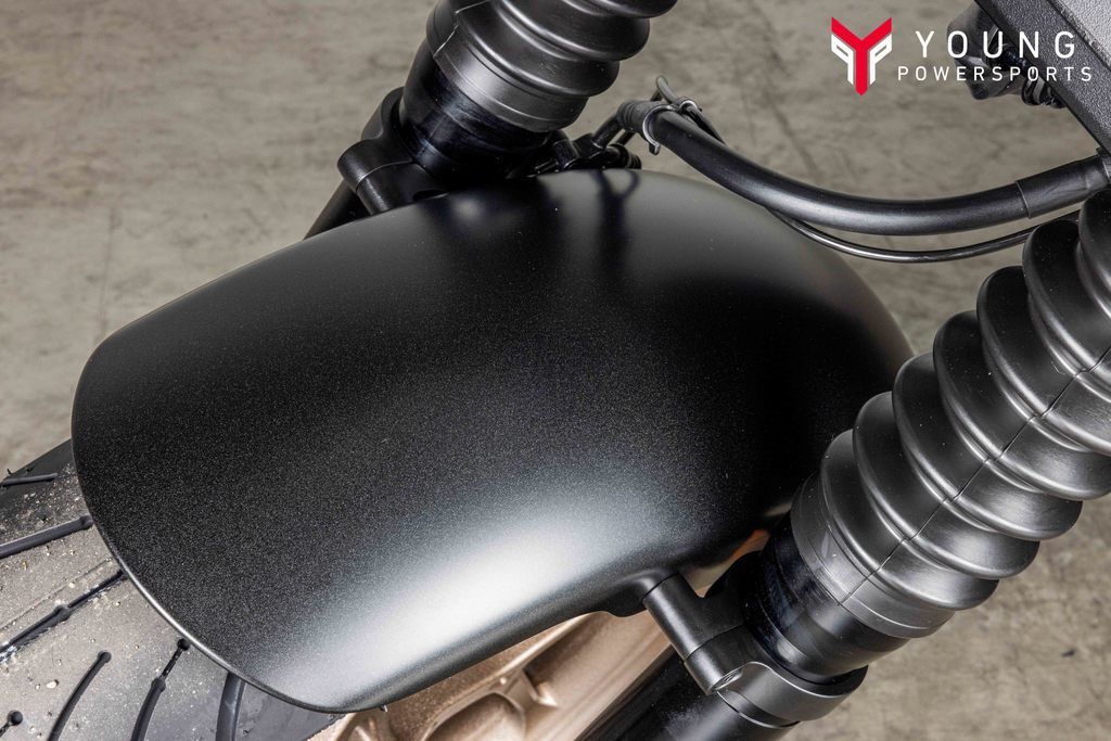 Our SE model offers a touch of special style with the following additional features: a short front fender, bar-end mirrors, fork boots, a custom seat, color-matched headlight cowl and an exclusive Deep Pearl Gray paint job.