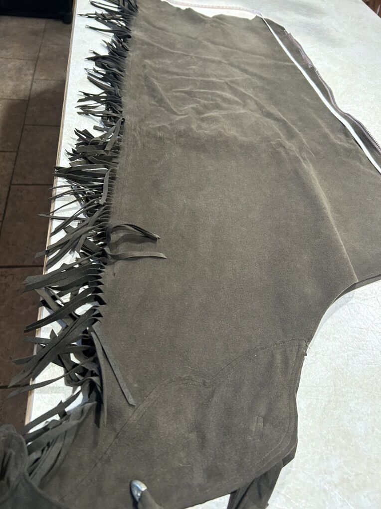 Great chaps lightweight waist is adjustable. Measurements in pictures. Please call or text with any questions. Top of thigh 21. Inches Overall length is 46 inches the zipper is 29 inches.
