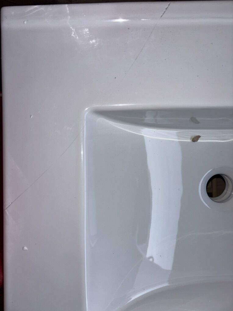 24 in. Floating Single Sink Wall Hung Natural Oak Bath Vanity with White Ceramic Top and Soft-Close Drawer (Assembled) Sink is a little cracked but not broken