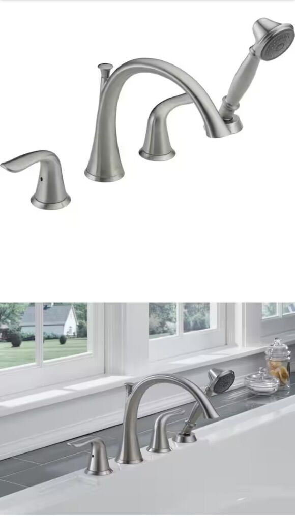 Lahara 2-Handle Deck-Mount Roman Tub Faucet with Hand Shower Trim Kit Only in Stainless (Valve Not Included