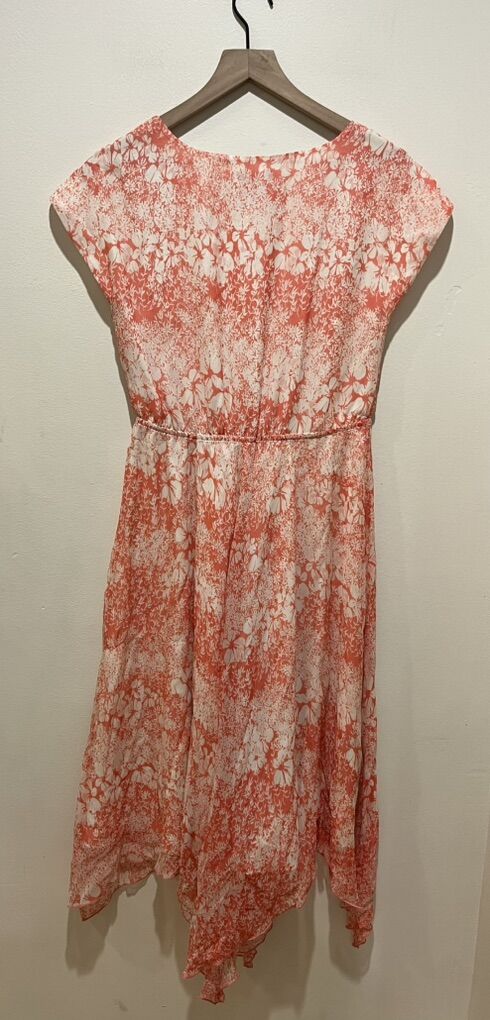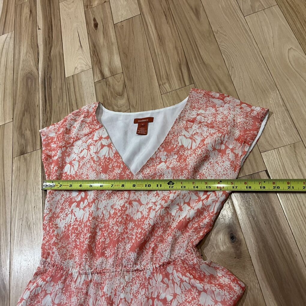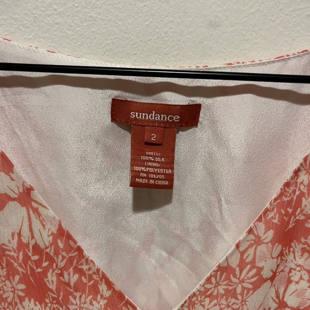 Sundance Avonlea 100% Silk Asymmetrical Coral Peach and White Floral Midi Dress - Women’s Size 2 - shell is 100% silk - long, pullover, oversized dress - excellent condition - pre-owned. B082