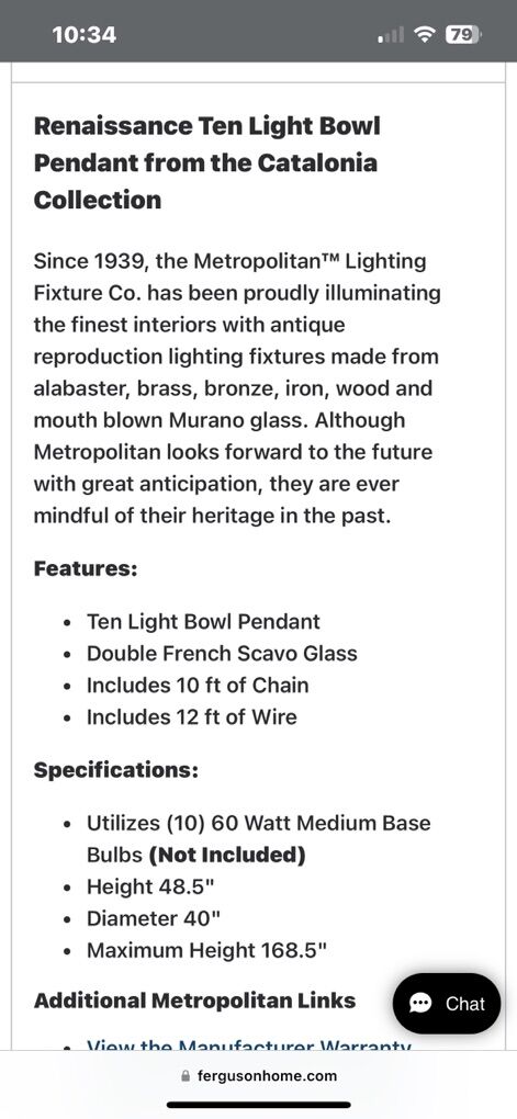 VenmoBuilder special! From: Metropolitan Lighting Company. Bronze finish. 10 foot chain. These are new in the boxes. Sitting in warehouse in Midway. Need them gone. Buy 3,5 or all 10. Price negotiable. $2500 New. Now $500 each.