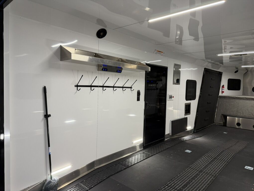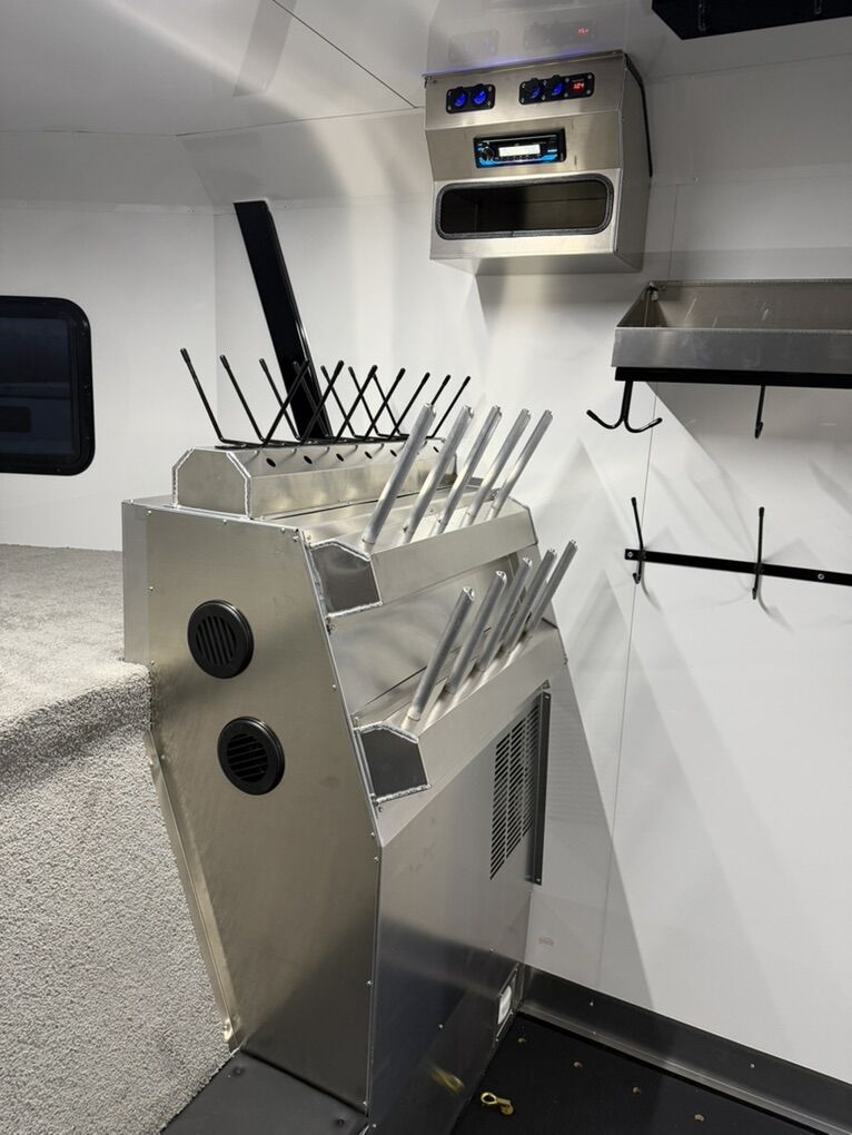 40K BTU Forced Air Furance w/Track Melt Kicker Audio Stereo System (2) Fold Down Benches Electric Jack (2) Batteries 6V 110 V Outlets Converter / Charger Traction Blocks Ducted Heat Pkg. Ski-Gluides on Ramps and Cargo Area Mirror Lower Lighting Paper Towl / Rack Cabient Onesie Rack Storage Cabinet