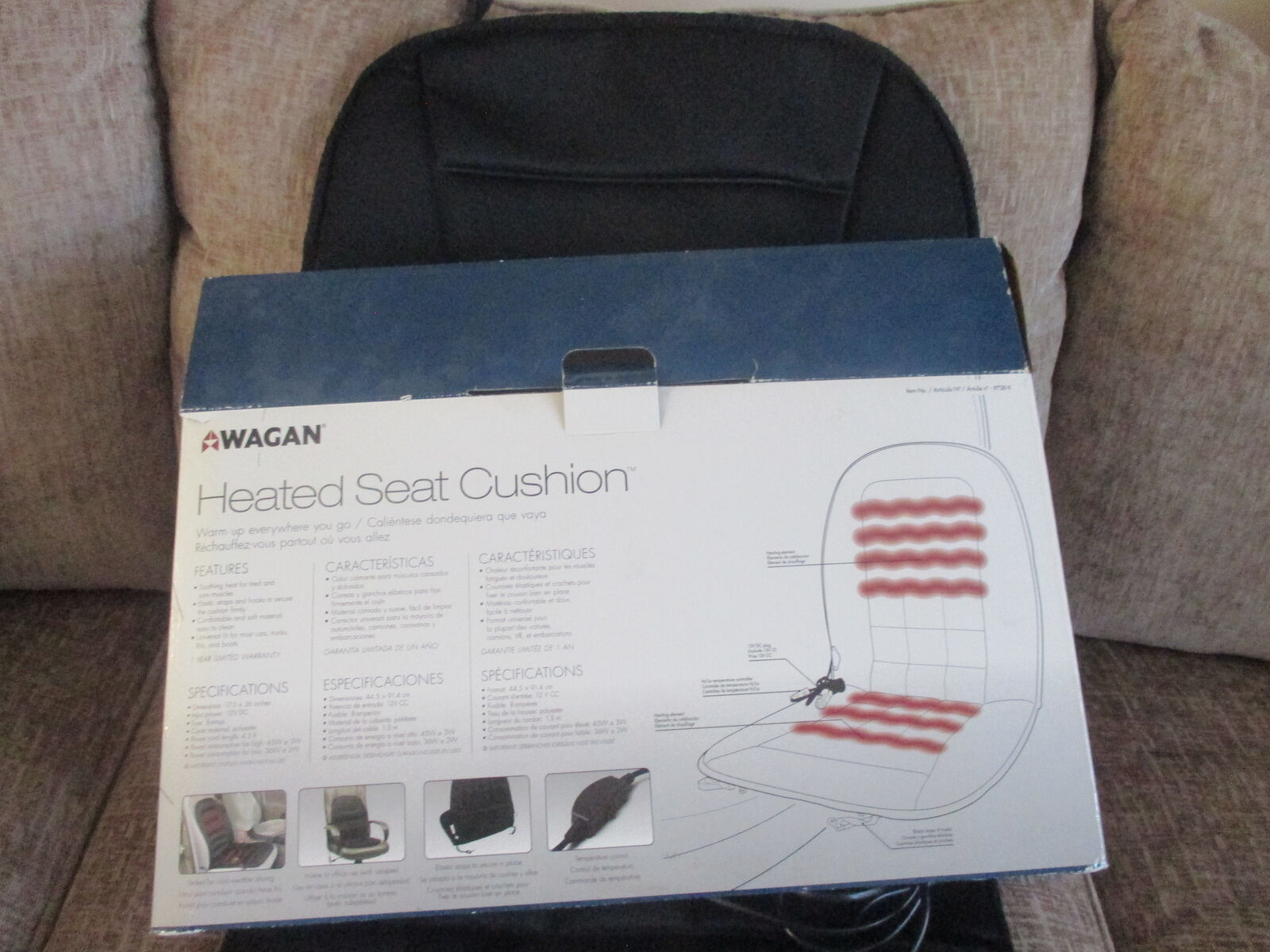 Heated seat cushion. 17 x 36, New in box. 12 volt, 4' 3" cord.