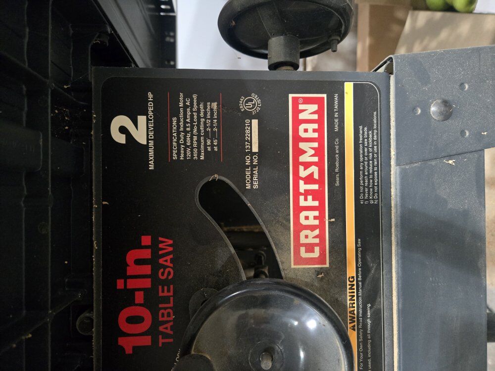 Craftsman 10-in table saw 120 volt model number 137.228210