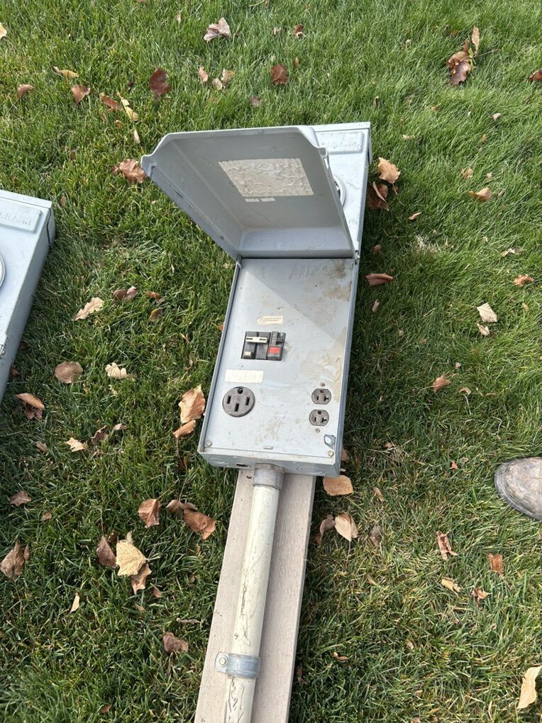 VenmoTwo left (the two on the left half of picture 1) GFCI breakers installed Pole pedestal is used to pull power from a telephone pole $200 each or best offer, $250 for both