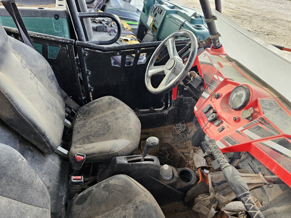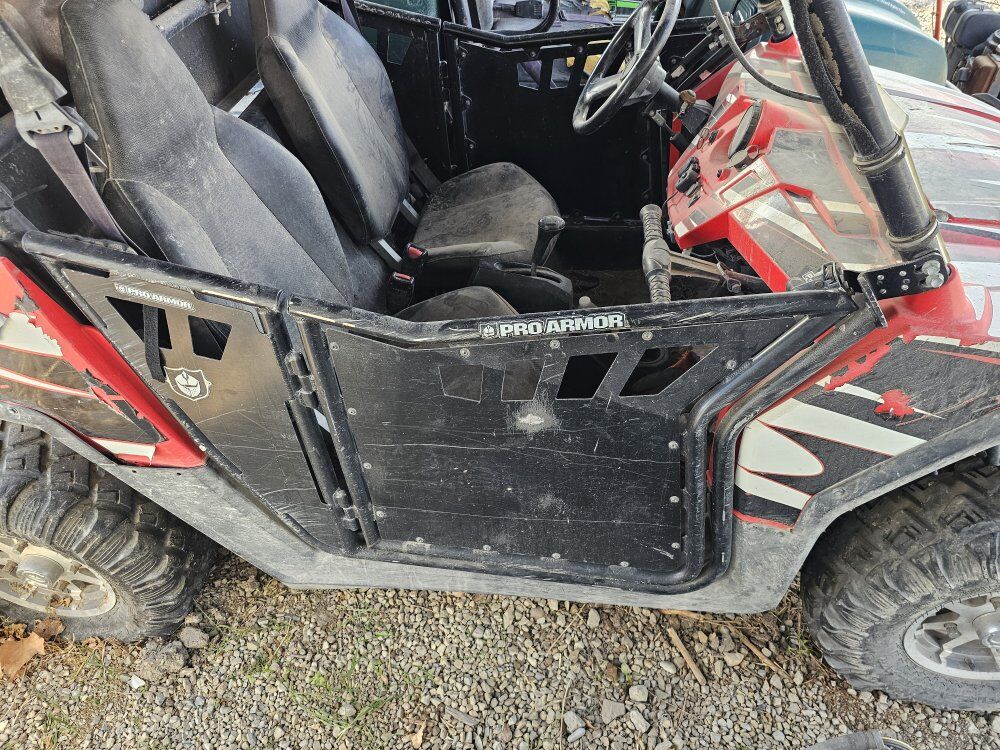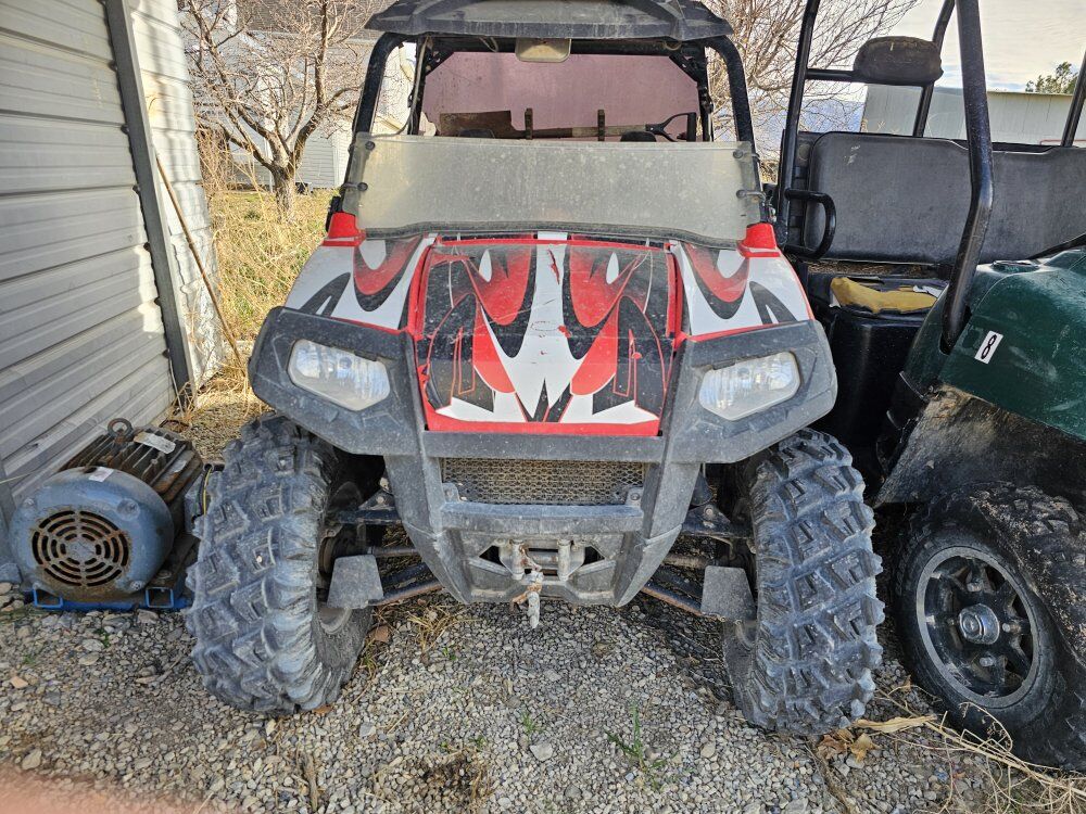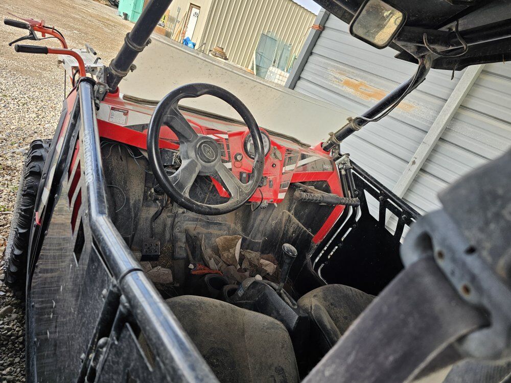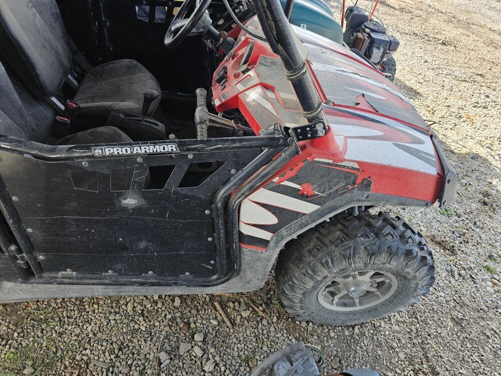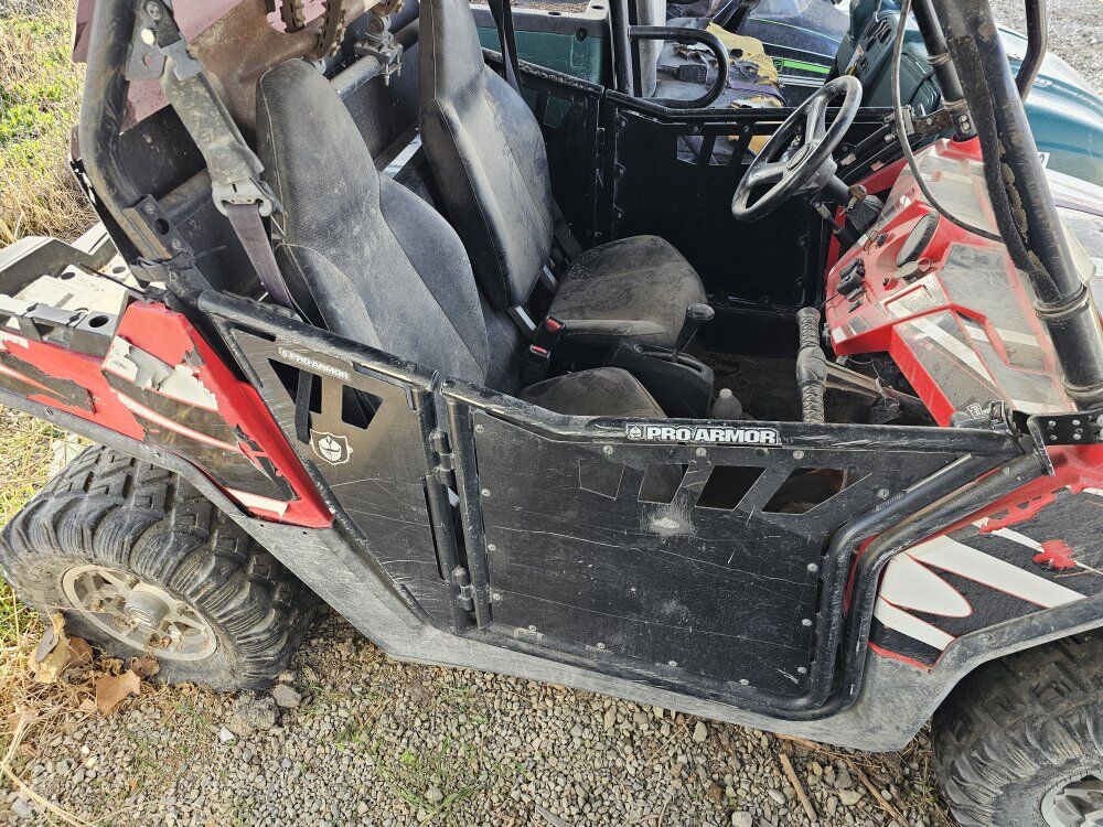 Polaris RZR. My brother bought this year ago. He used it for fun, but it started making a clicking sound when you start and drive it. We do not have the time to pull it apart and figure out where the clicking sound is coming from. It comes with a snow blade as well.