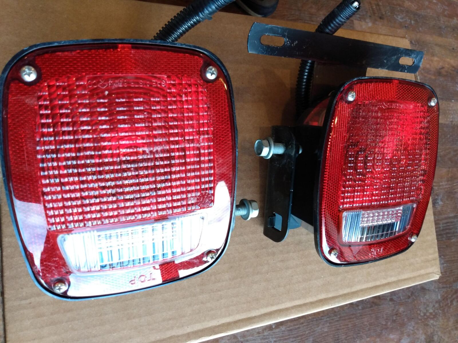 Break, turn, and reverse tail lights. Perfect for a trailer, flat bed or truck tail lights. New take offs. Asking $15 for the set, I have several sets.