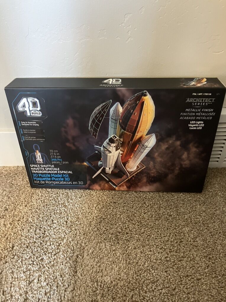 VenmoBrand new in the box never been opened. This is a space shuttle 3D model kit with 346 pieces from the architect series with a metallic finish. Cash or Venmo and pick up only. FCFS.