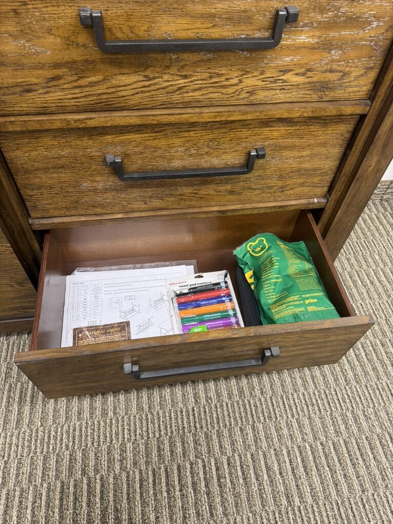 This cabinet works great for a home office, living room, entryway, or bedroom, and is also ideal for professional office or workspace use. Sturdy construction with a neutral wood finish that fits well with farmhouse, rustic, or modern décor.