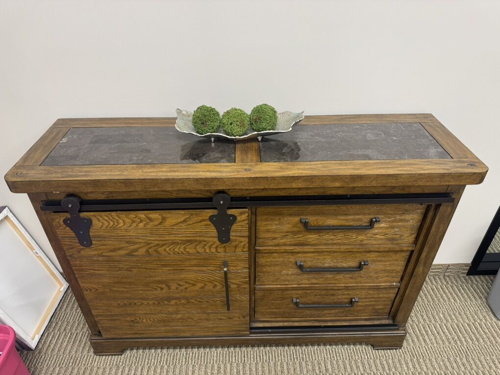 VenmoSolid wood storage cabinet in excellent condition. Features a sliding barn-style door and multiple drawers, offering both concealed and easy-access storage.