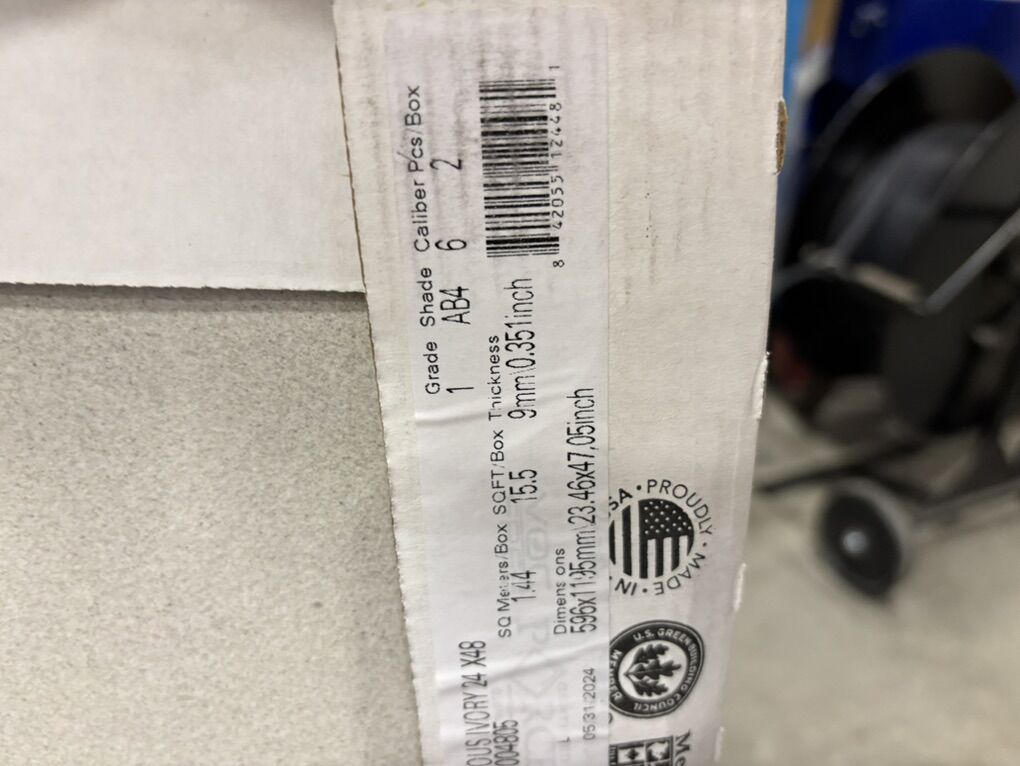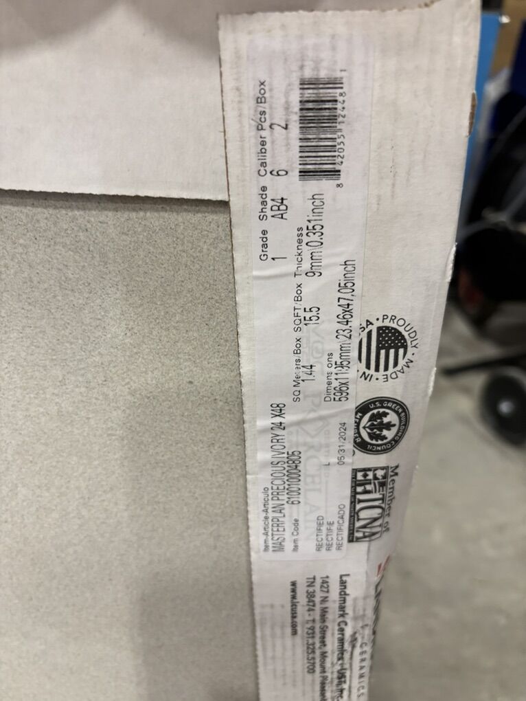 ZelleLandmark Ceramics Masterplan 24”x 48” Rectified Matte Porcelain Tile. Color is precious Ivory. There are 7 full tiles plus one broken piece. Retail for all is $371