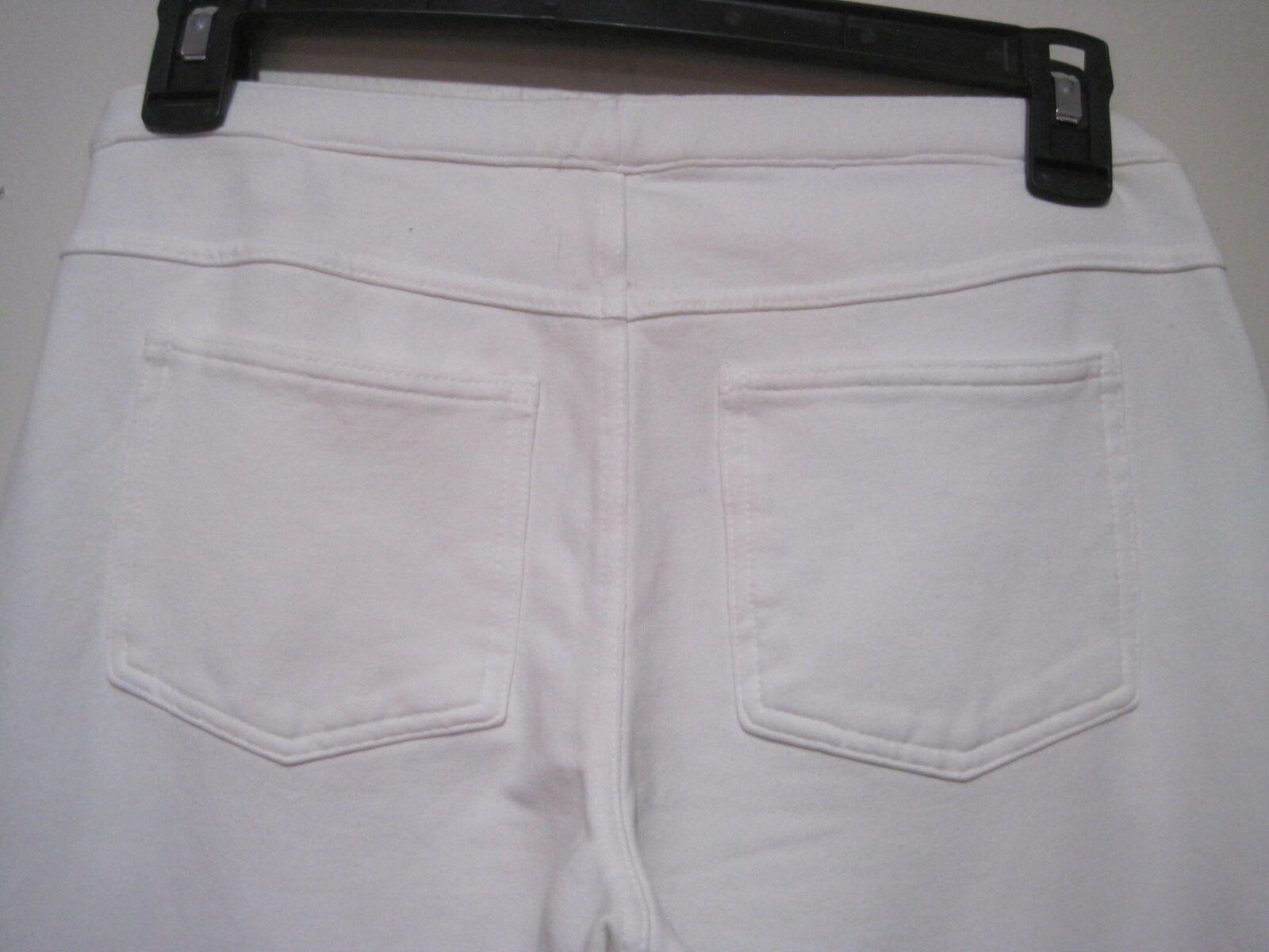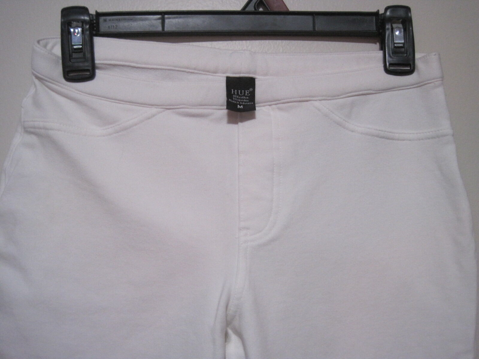 The Hue Women's Size Medium Cream White Basic Cotton Blend Lounge Chino Stretch Pants are a versatile and comfortable option for casual wear or travel. Made of a cotton-spandex blend with a knit fabric type, these pants feature a pull-on closure and a low-rise fit for added comfort. The white color and straight leg style make them a classic choice for the fall, winter, and spring seasons. With an elastic waist, pockets, and stretch fabric, these pants offer both style and functionality for everyday wear.