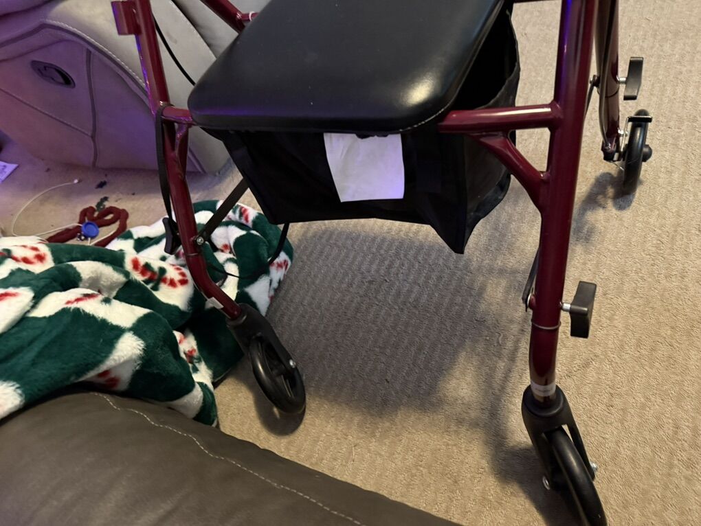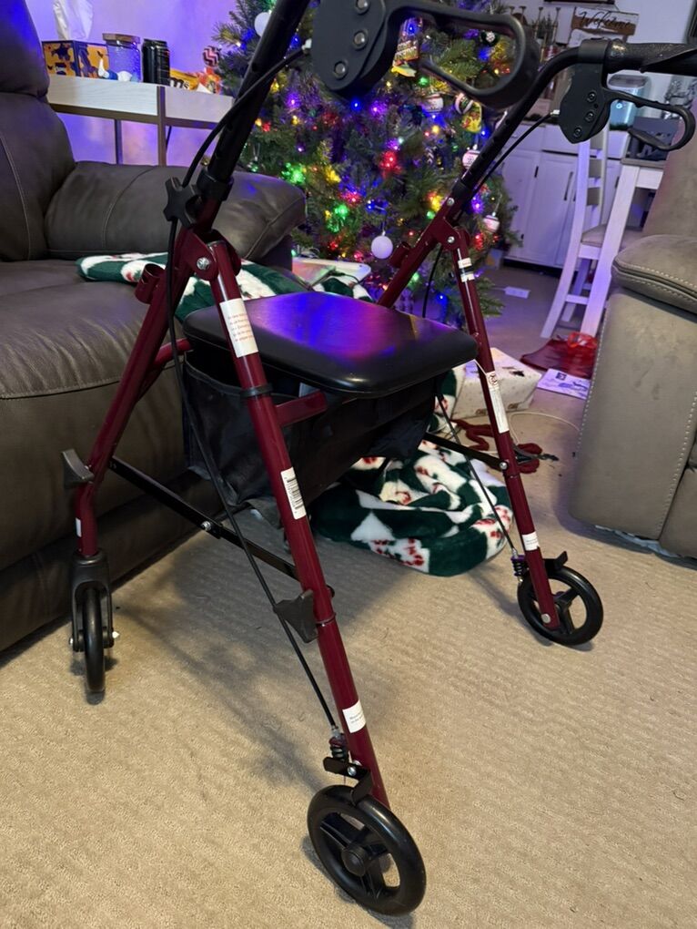 VenmoSeated walker with storage! I used it after my leg surgery and no longer need it. It has hand breaks and is amazing! I loved it for recovery.