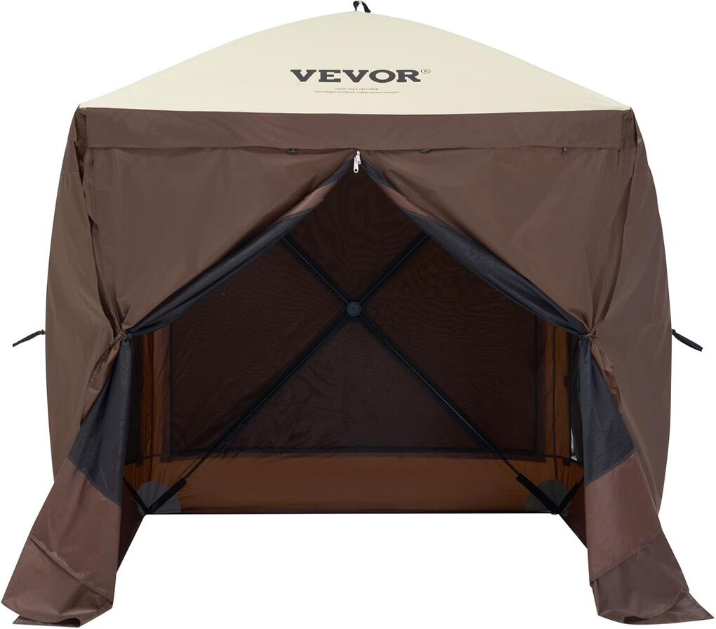 VEVOR Pop Up Gazebo Tent, Pop-Up Screen Tents 4 Sided Canopy Sun Shelter with 4 Removable Privacy Wind Cloths & Mesh Windows, 6x6FT Quick Set Screen Tent with Mosquito Netting, Brown