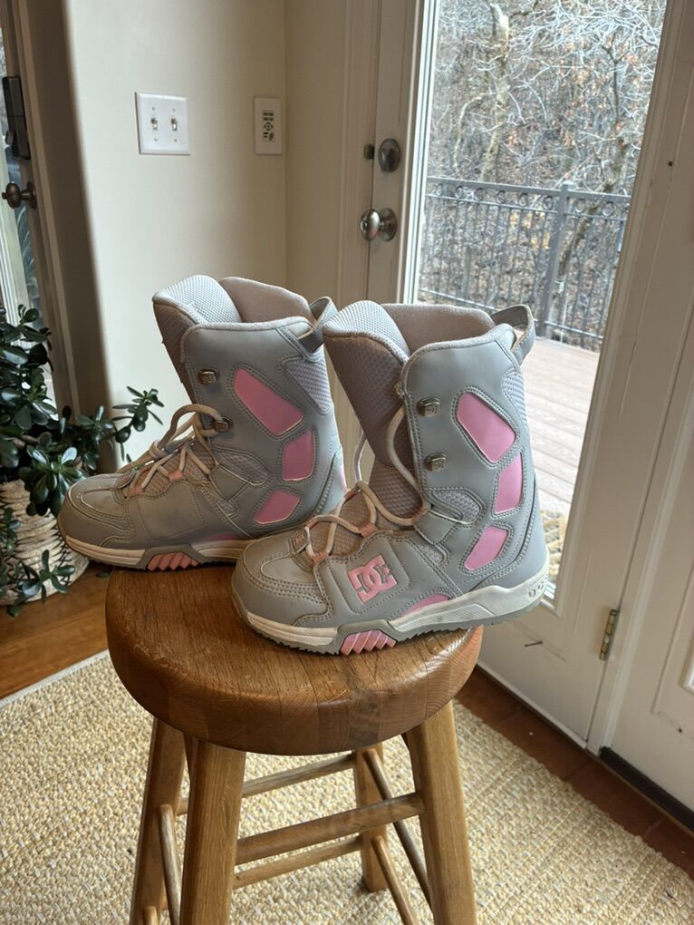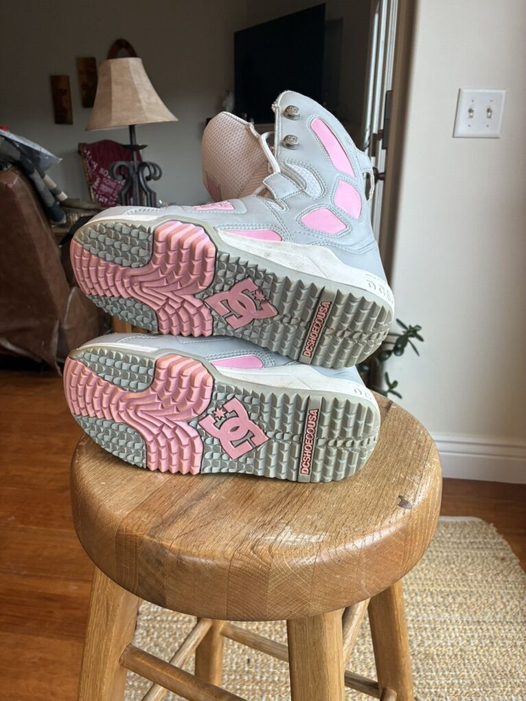 Venmo I am selling a DC youth scout snowboard boot. They are a beautiful boot. They are gray and pink and color. DC is a great brand. These are wonderful boots. They are well fitted. Will keep feet warm and dry.