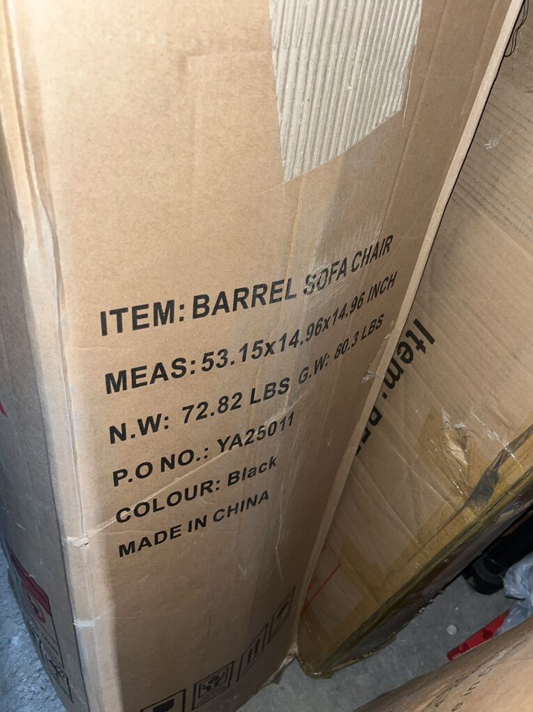 ZelleBrand new in the box back Accent Barrel Chair Oversized Modern Upholstered Sofa Lounge Club Leisure Chair Round Chair for Hotel Living Room with 3 Pillows (Black Chenille), 15D x 38.6W x 50H in Brand new in the box Pick up in Taylorsville check out my other ads