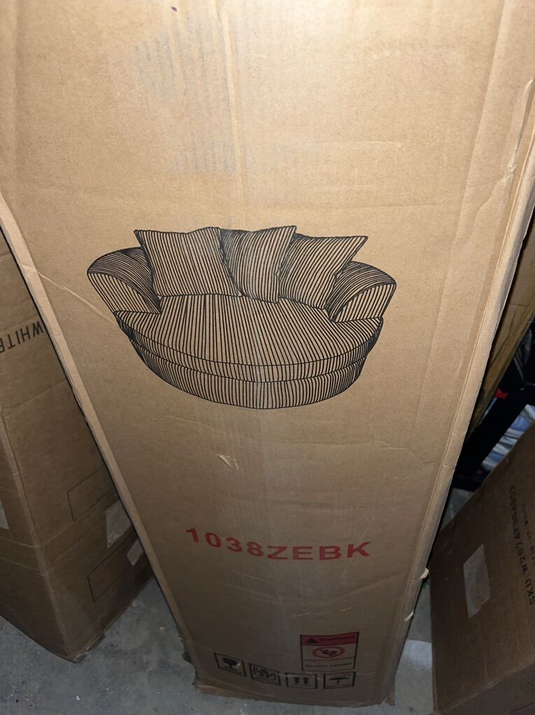 VenmoBrand new in the box back Accent Barrel Chair Oversized Modern Upholstered Sofa Lounge Club Leisure Chair Round Chair for Hotel Living Room with 3 Pillows (Black Chenille (pick up in Taylorsville)