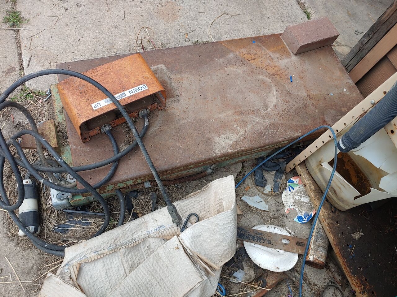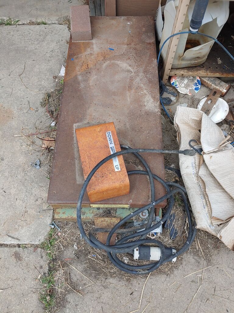 WORKS AS IT SHOULD. Power Scissor Lift Hydraulic Table 24" x 48" 2000lb Capacity Moves Smooth as Silk. Bit of an ugly old hen but she'll save your back and you progeny.