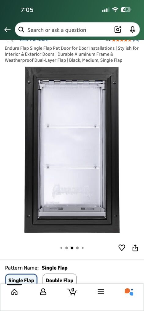 VenmoRetails for $320. Brand new in box. Black in color. The Endura Flap single flap pet door is designed with a high-quality aluminum frame and an insulated flap that remains flexible in extreme temperatures, providing excellent weather resistance and energy efficiency for your home; medium flap measure 8 x 15 and is suitable for pets up to 22 tall. Can also instal for an extra $150-$200 depending on where you’re located.