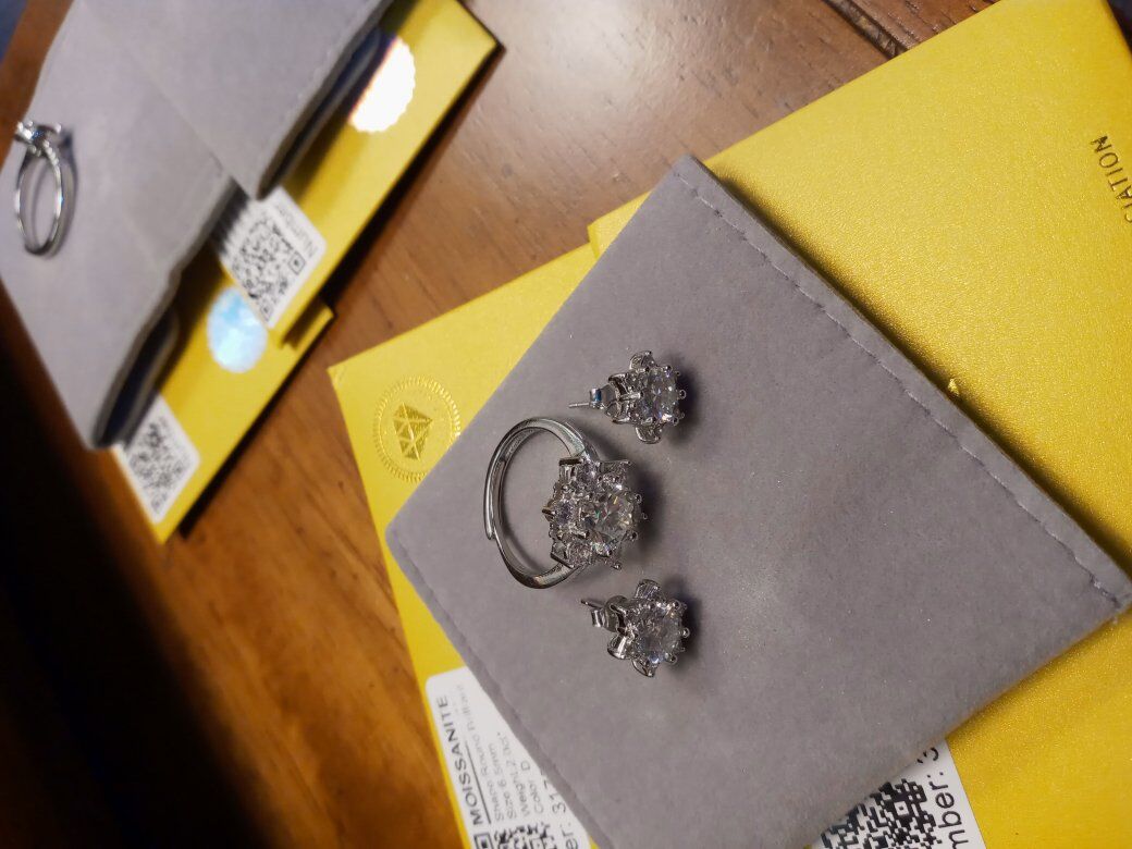 CashApp2CT ring snowflake silver white goldfilled band and matching earrings 1CT total weight on the earrings come with authenticity card 150$