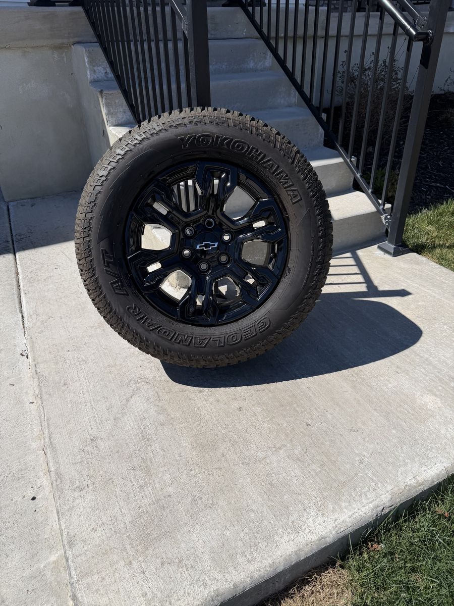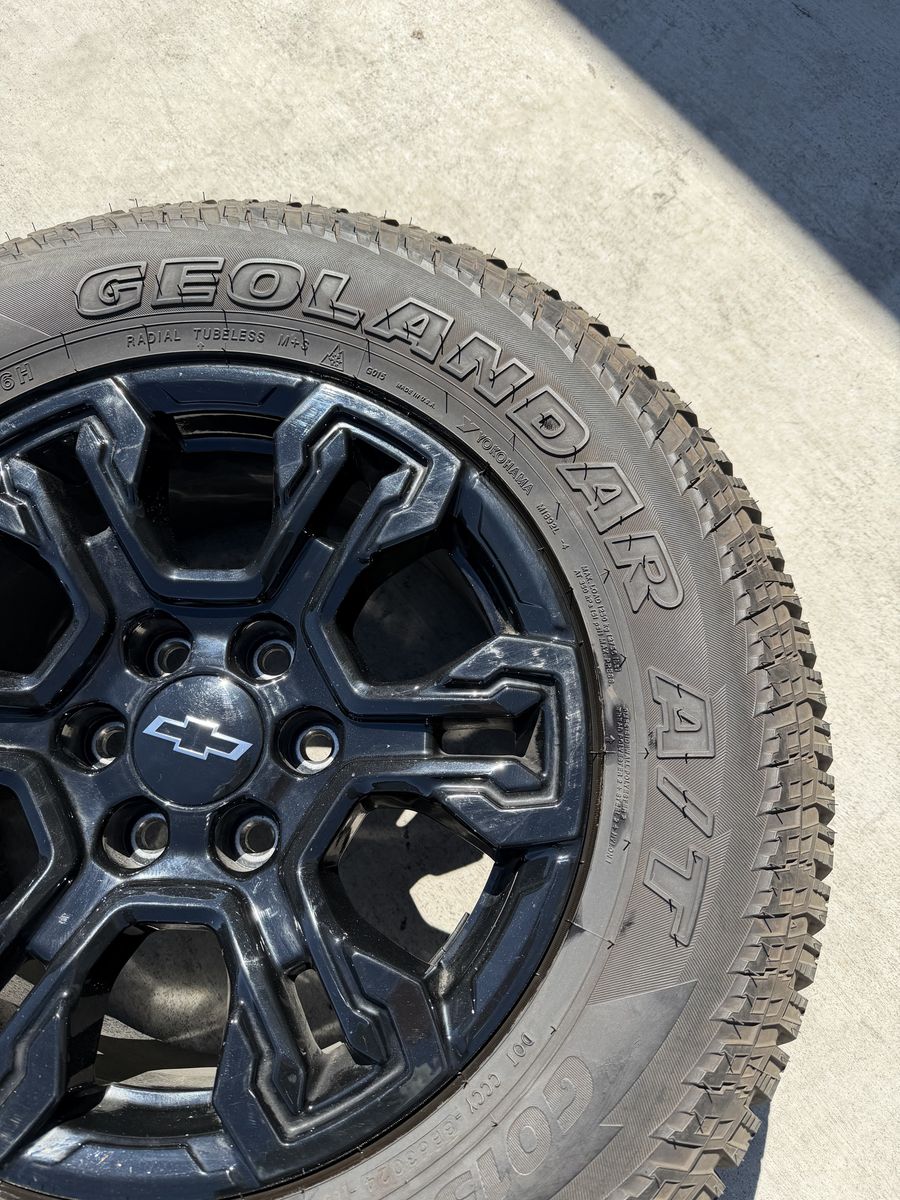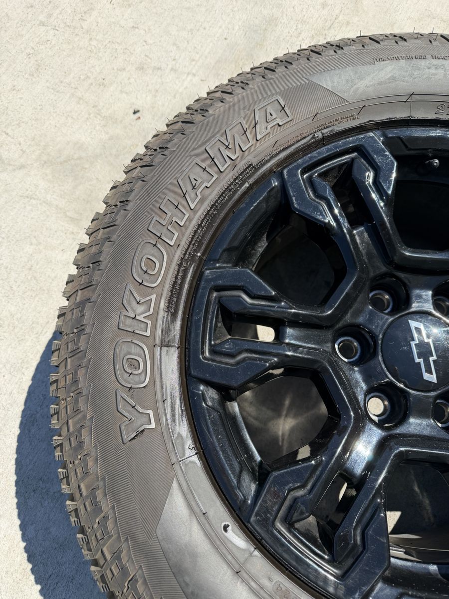 ApplePaySet of 4-Chevy Silverado 1500 ZR2 Tahoe Rims and Tires 275/65R18 Yokohama Geolander AT in great condition,asking $1650 obo Tires are like new lots of tread on them Rims are in great condition 1 rim has a minor curb rash I can sell the rims or tires separately Bolt pattern 6-5.5 or 6-139.7 They will fit gmc sierra Yukon Denali Chevy Silverado Tahoe suburban Text anytime 385-402-2292