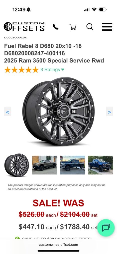 ApplePaySet of 4-Dodge ram 3500 Chevy Rims and Tires 35/12.50R20 Toyo AT3 Load E in great condition,asking $2650 obo Tires and rims 6000 miles on them Rims have some curb rash and they were touch up with some paint on the rings I can sell the rims or tires separately Rims are Fuel Rebel 20-10” -18 offset Bolt pattern 8-6.5 They will fit Dodge Ram 2500-3500 Chevy -GMC 2500-3500 from 2010 and under Ford F250 1998 and under Text anytime 385-402-2292