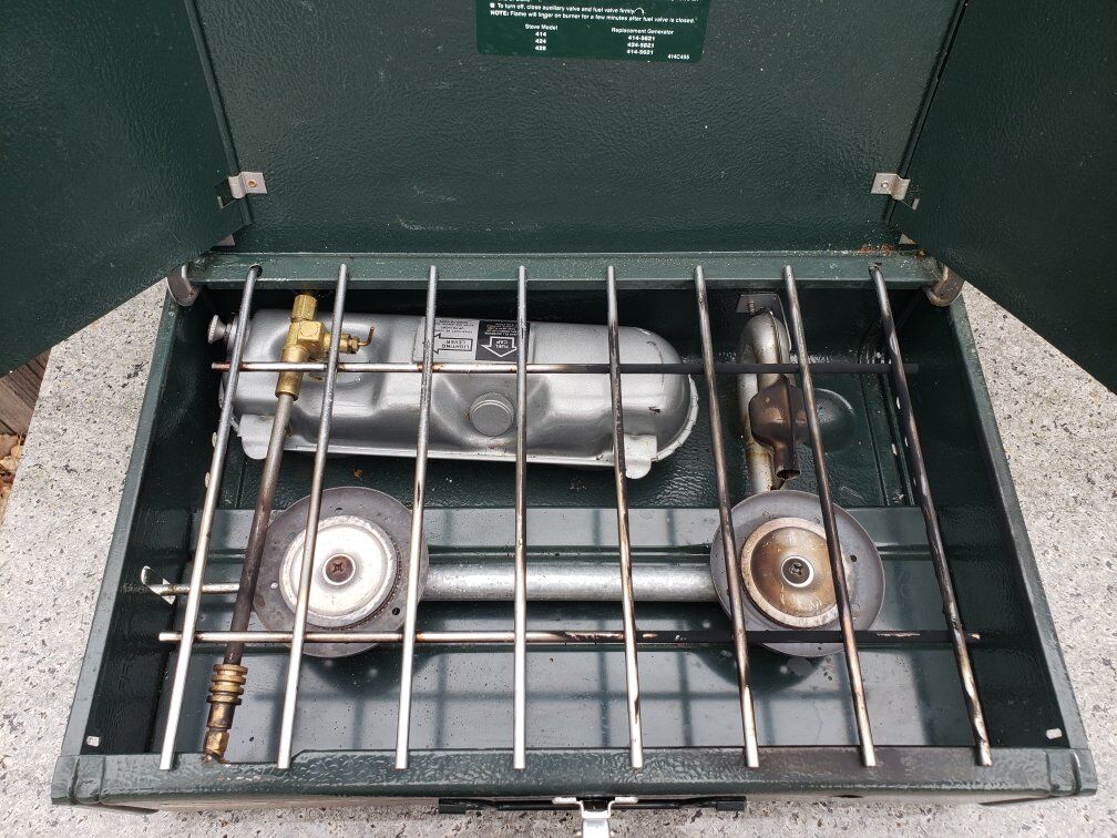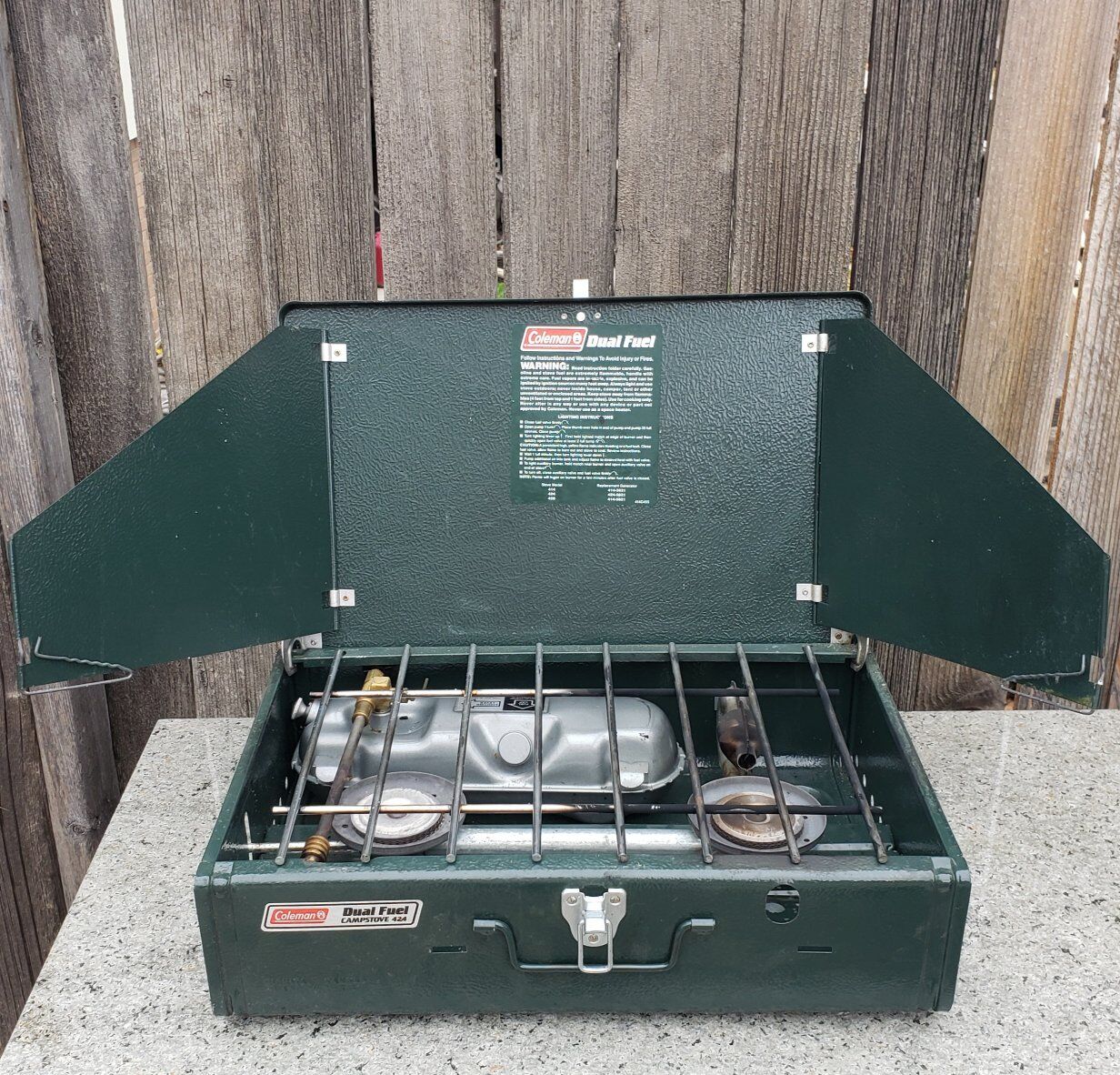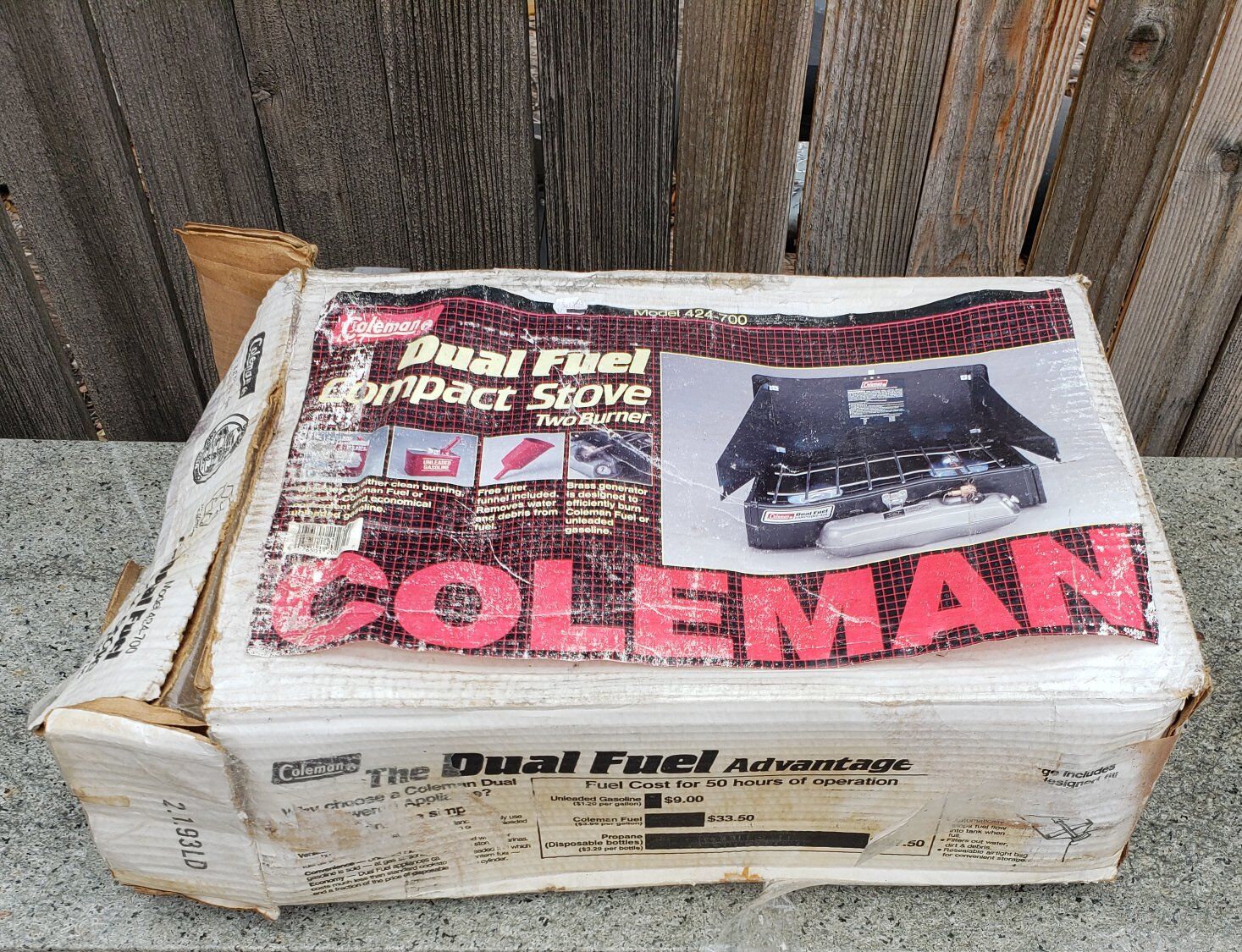 VINTAGE COLEMAN STOVE CAMPING DUAL FUEL COMPACT STOVE 2 BURNER Message anytime to come and see!