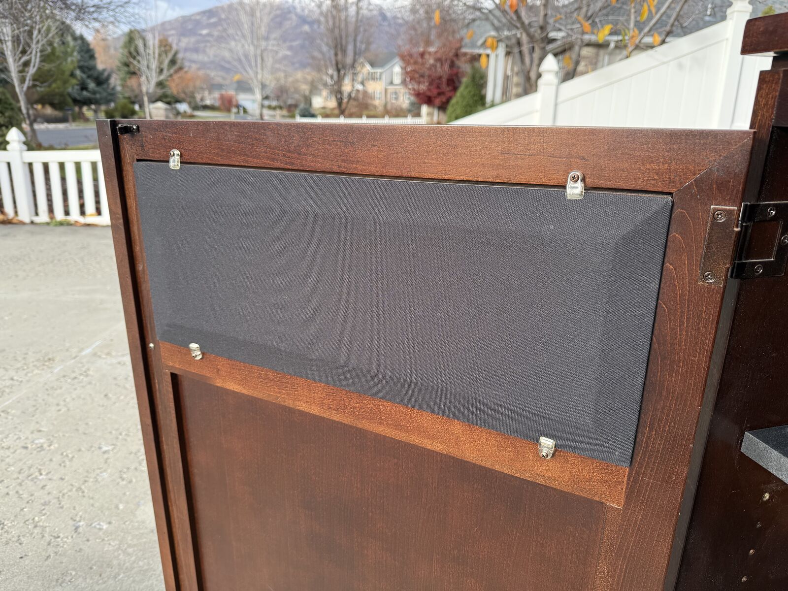 Includes optional speaker grilles that can be swapped in for the upper wood door panels if you want to hide speakers inside the cabinet