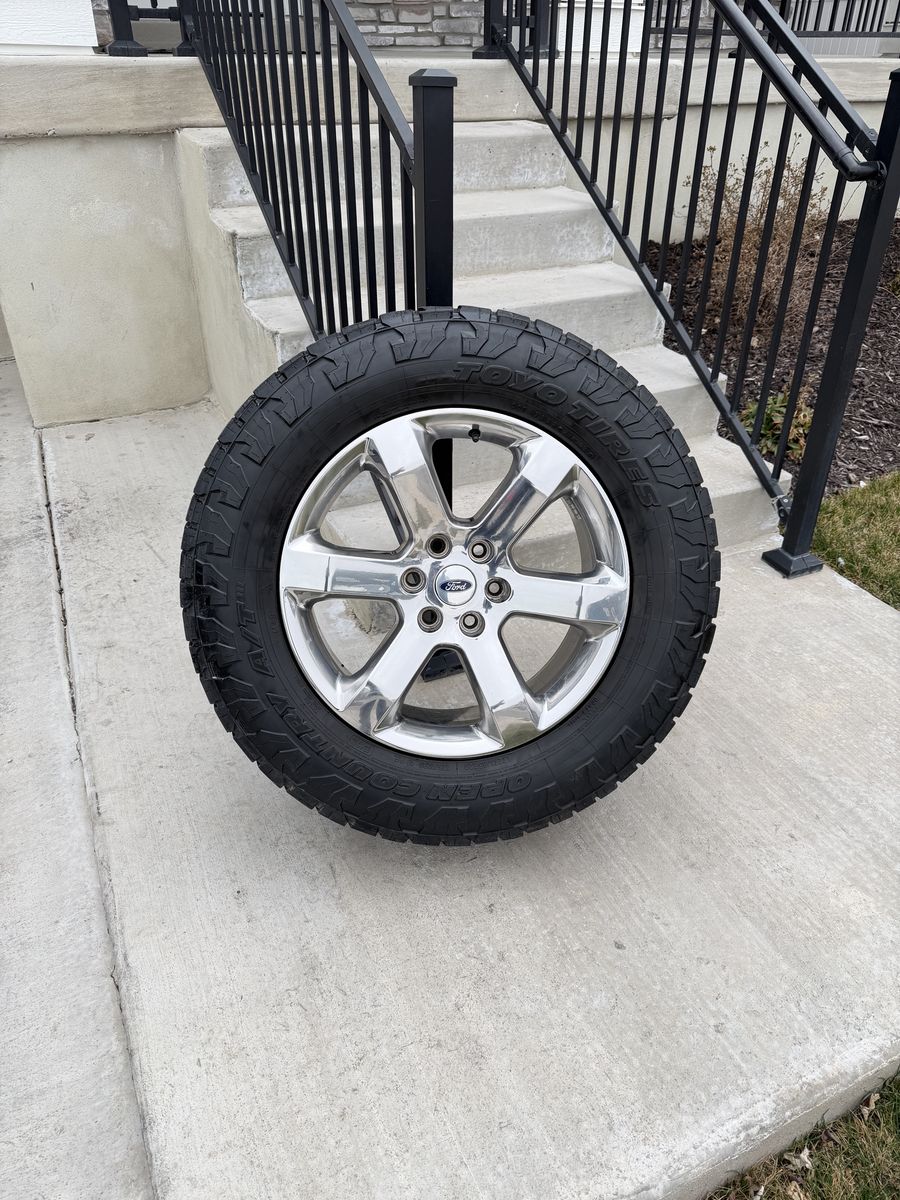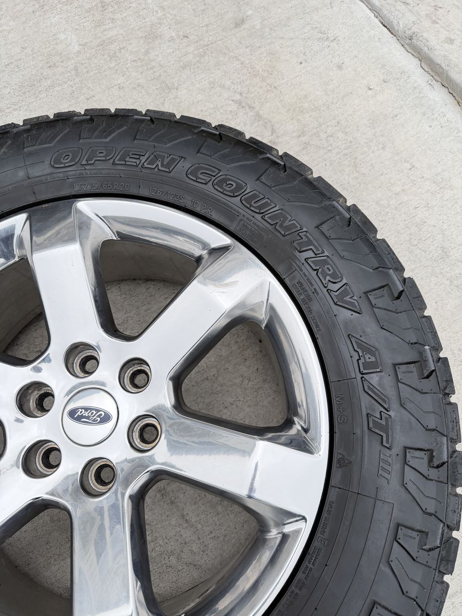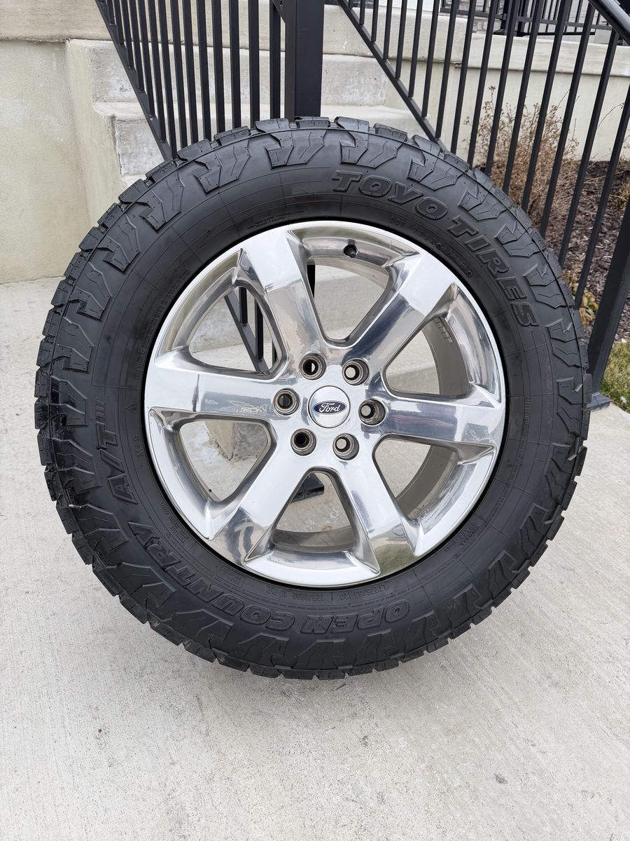 ApplePaySet of 4-Ford F150 Rims and Tires 275/65R20 Toyo AT3 Load E in great condition asking $1800 obo Tires have lots of tread left Rims are like new in great condition I can sell the rims or tires separately Bolt pattern 6-135 Text anytime 385-402-2292