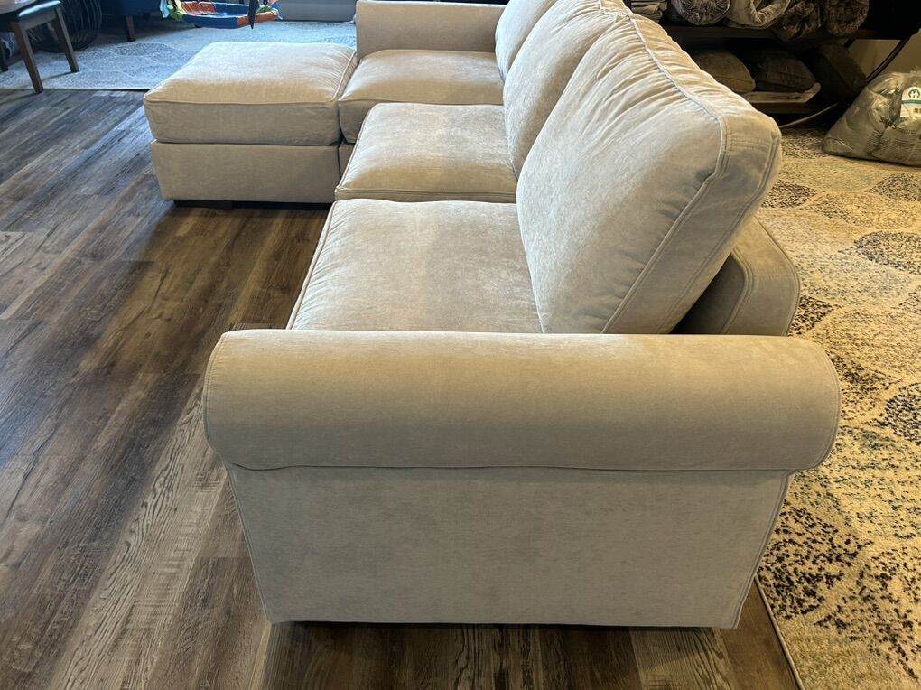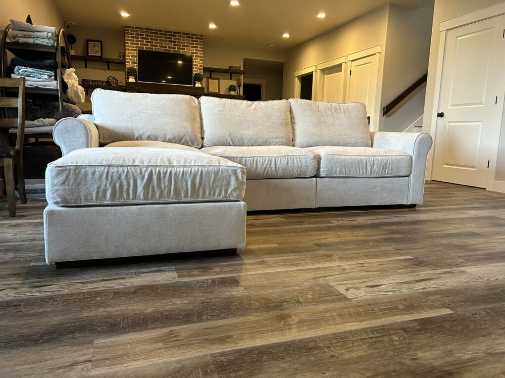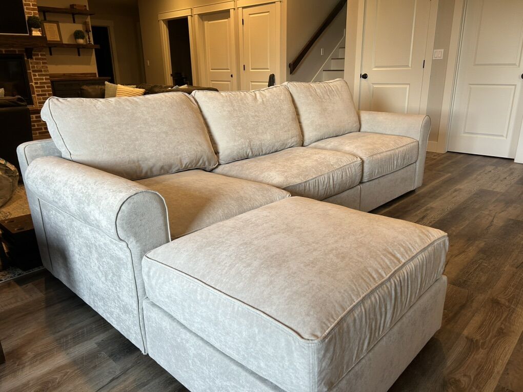 VenmoLoveSac Sofa Sactional with Chaise in Sky Grey Corded Velvet Used for just a few months Clean, like new condition