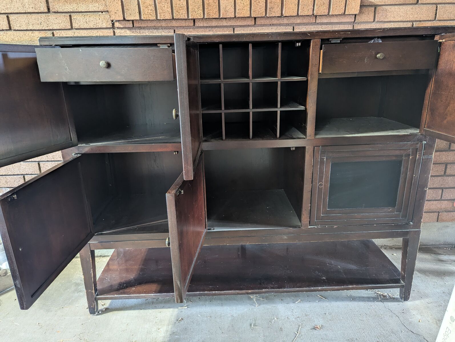 Dimension: 48" W x 60" H x 18 3/4" D. Missing one knob.