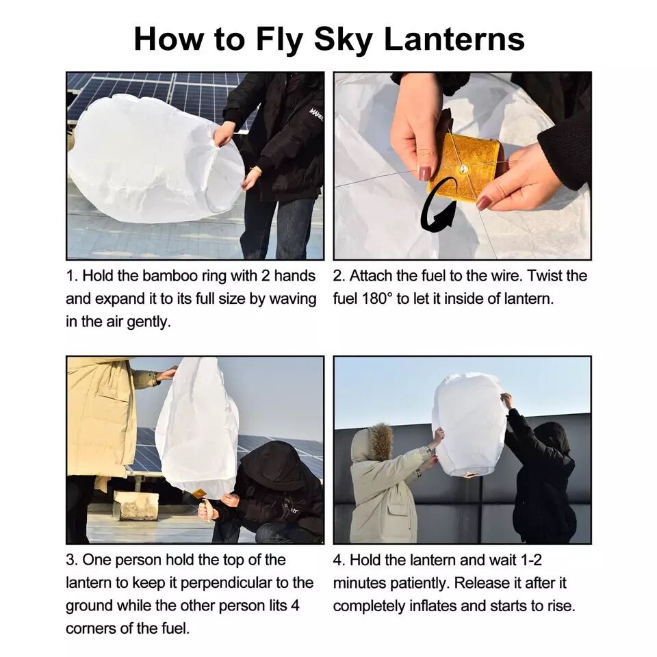 Sky Lanterns are an amazing addition to any celebration. Sky Lanterns turn any evening or night celebration into magical displays of enchantment and fun. Also called Chinese Lantern, Sky Lantern, Wish Lantern, Floating Lantern, Floating Light, and Wishing Light. These are translucent hot-air-balloons. They have a small fuel source in the middle that, once lit, will lift the lanterns slowly into the sky with a soft glow.