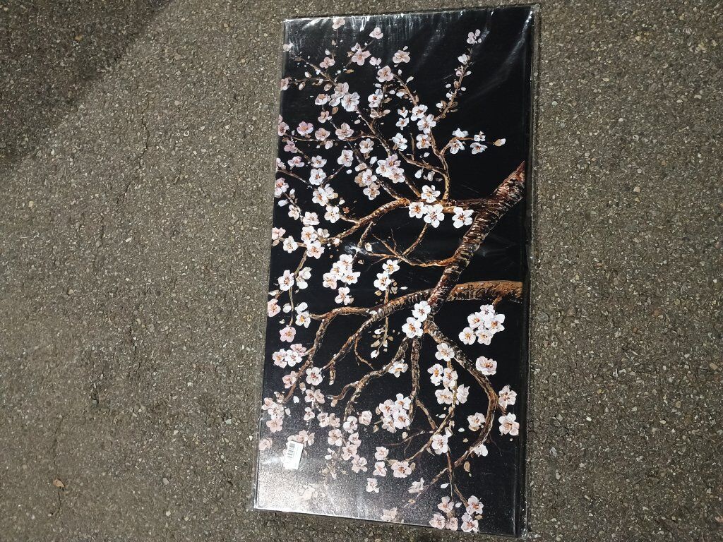 beautiful cherry blossom branches with black background tree of life wall art/canvas painting. 40in by 20in $60 cash firm. pickup in Ogden either at the North end of town by 5 points or South end of town by wsu.